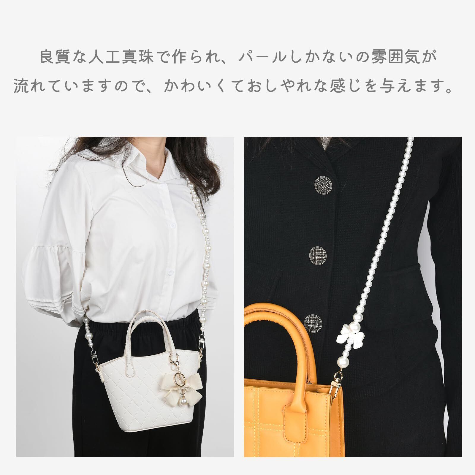 【製品仕様】◆対応機種 :全機種対応。◆ 内容物:パールストラップ × 1本、タグパッチ ×2枚。◆ 素材 : 人工パール、メタル◆ サイズ : 約 118cm(手動測定のため、1~3cmの誤差があります。) ◆ 重量 : 約 55g。