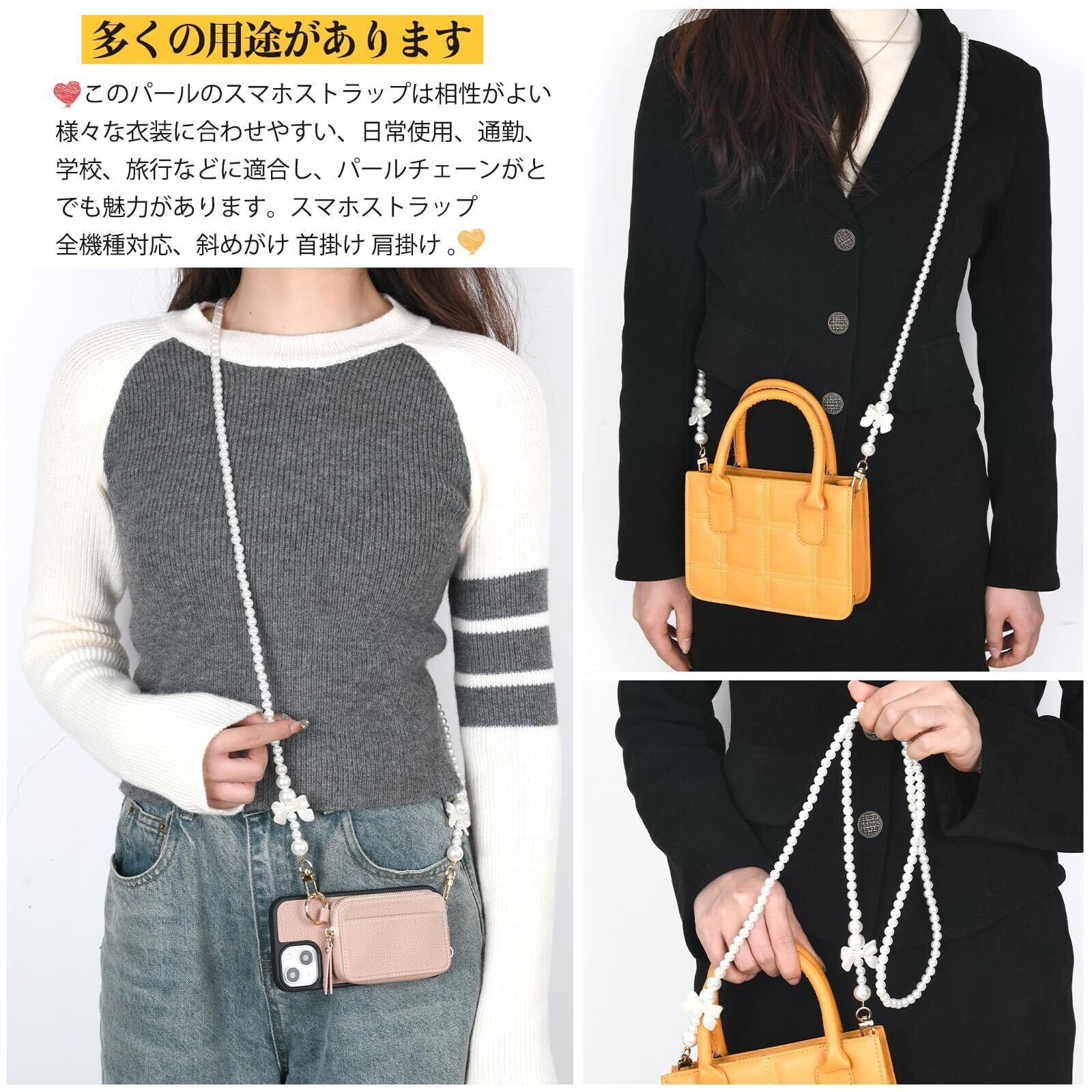 [Ganve] スマホショルダー パール レディース スマホストラップ 全機種対応 女性 携帯ストラップ 斜めがけ 首掛け 肩掛け おしゃれ iphone スマホネックストラップ 耐久性 ストラップ 落下防止 忘れ物防止 ストラップカード2枚付き | yankees
