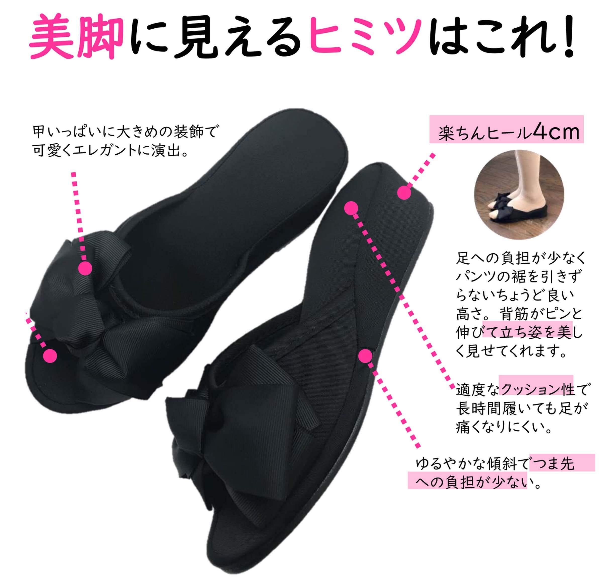 ヒールスリッパ レディース 室内 軽量 静音 おしゃれ 4cm 美脚 STYLE ローズ ブラック (学校 参観日 受験 プロ用 サロン エステ などに)