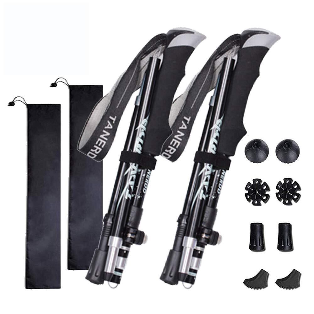 トレッキングポール 折りたたみ 軽量アルミ製 2本セット SOFIT コンパクト長さ調整可能 36-130cm伸縮可 ウォーキング ステッキ ポール 男女兼用 トレッキング 収納バッグ付き 3種類のキット 付 登山 杖 アウトドア (ブラック) | yankees