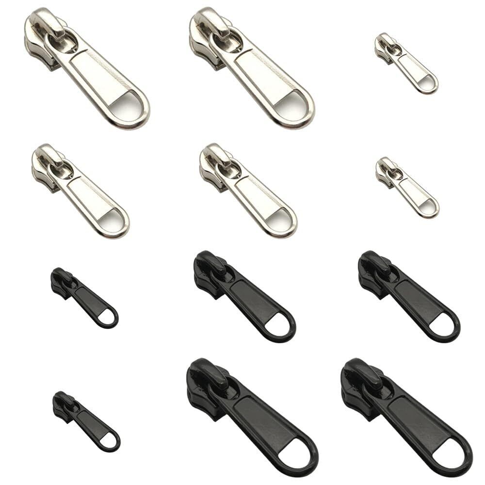 SANJAOYEE ファスナー 引き手 ファスナー 修理 スライダー 12個セット 3サイズ 金属製 引っ張りスライダー 取換 耐久性のあるジッパーヘッド 取り外し可能で再利用可能なジッパー交換スライダー