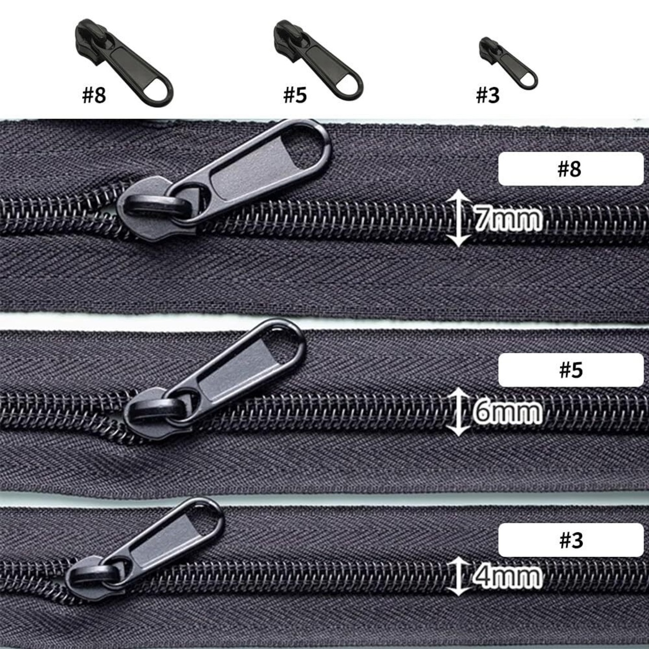【サイズ多くのジッパーヘッド】シルバー3#、5#、8# 各2本、ブラック3#、5#、8# 各2本、合計12本。