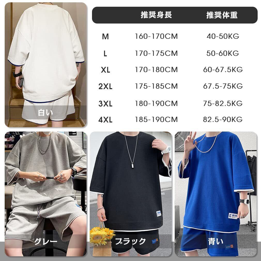 [SUKESEM] tシャツ メンズ 半袖 上下 セット 夏服 ゆったり ジャージ メンズ 上下 ハーフパンツ セットアップ メンズ 無地 スウェット メンズ 上下セット フェイク レイヤード 大きいサイズ