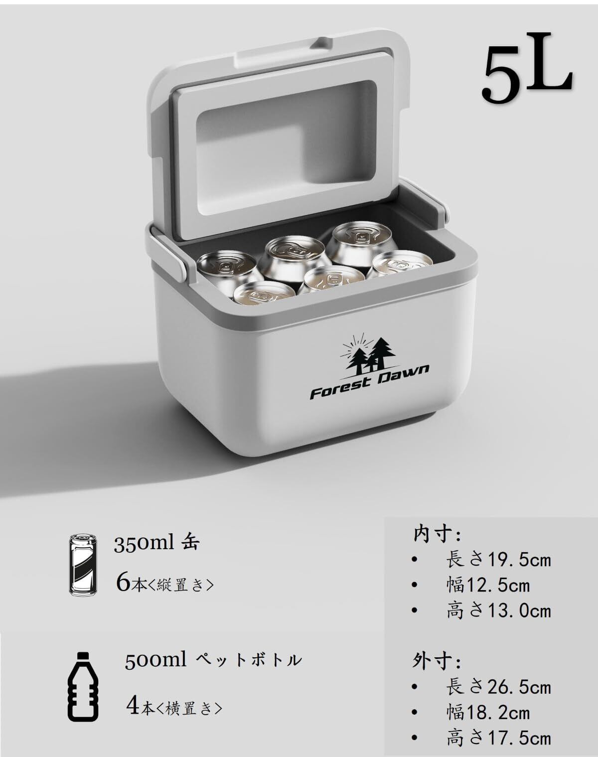 [Forest Dawn] クーラーボックス 保冷ボックス 5L 小型 真空断熱 保温 超軽量 ハードクーラー Cooler Box クーラーbox フィッシングクーラー 釣り キャンプ 部活 お手入れ簡単 キャンプ クーラーボックス キャンプ/釣り/運動会/お花見/部活や買い物等に大活躍