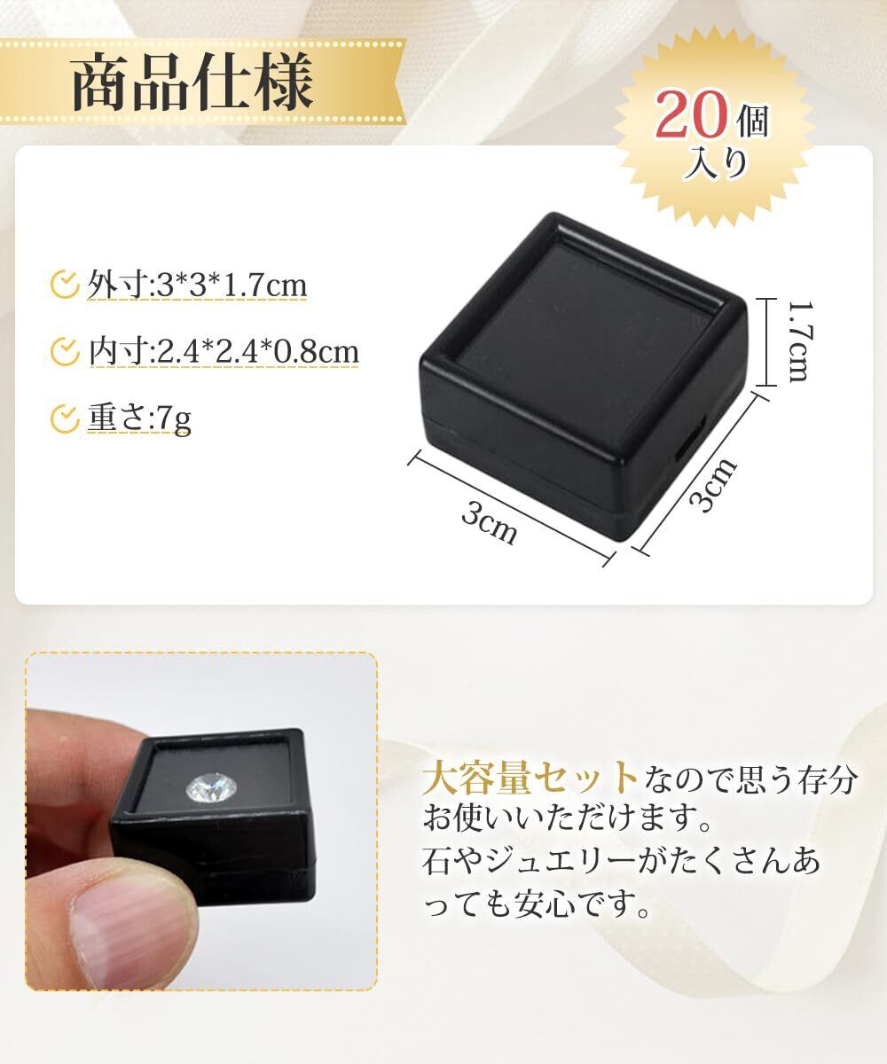 GOODCHI ルースケース 宝石箱 20個セット 窓付 プラケース 3cm ジュエリーケース 小物入れ (ブラック)