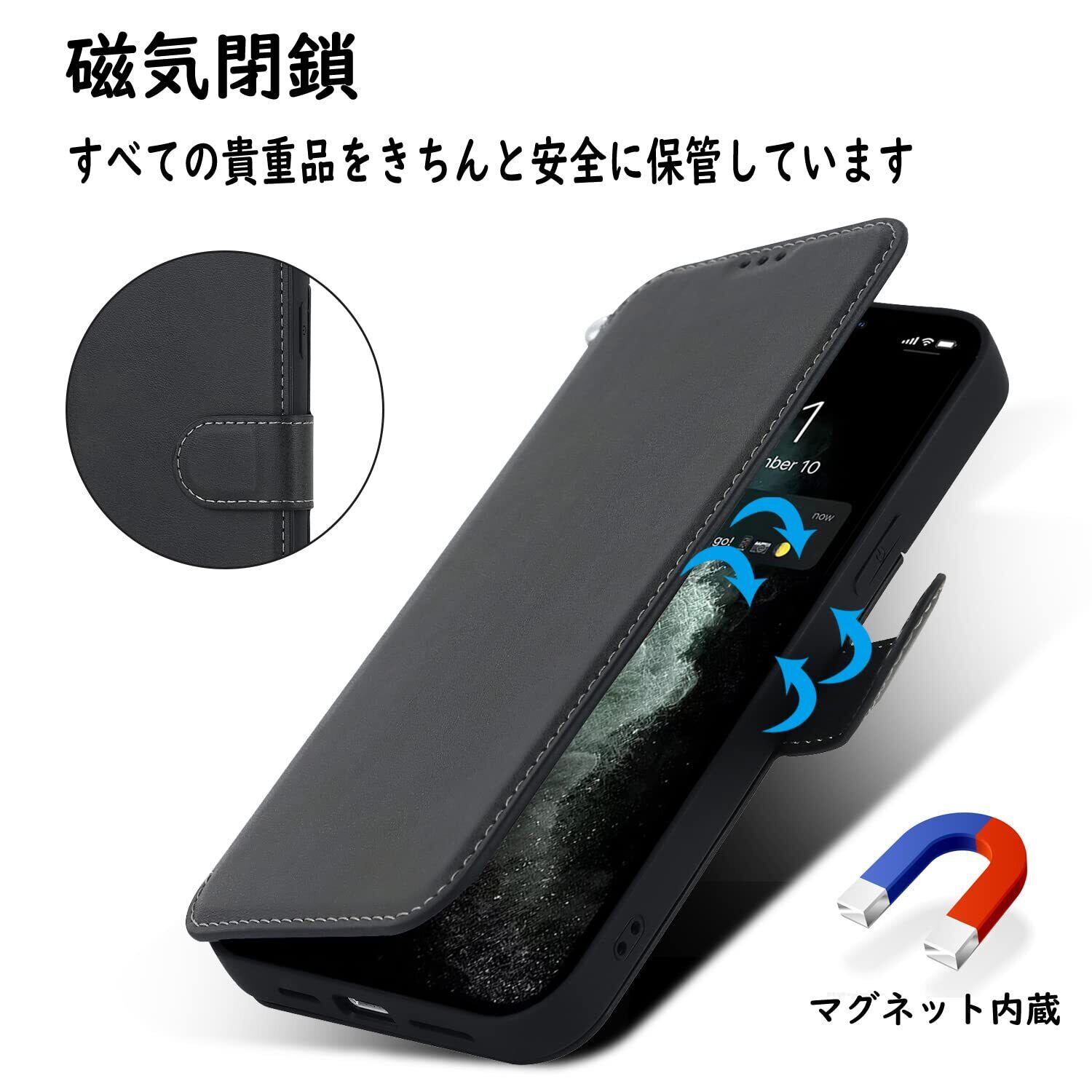 【収納機能】ケース内側に実用性のカード入れポケット×3、内側ポケット×1。また、消磁を防ぐために、カードスロットにあまり多くのカードを入れないことをお勧めします。携帯電話ケースのアップグレードでは、側面にストラップが追加され、脱落することなく手に掛けることができます。カードスロットに2枚のカードを入れると、内蔵マグネットの機能を最大限に発揮し、カードが消磁されるのを防ぐことができます。