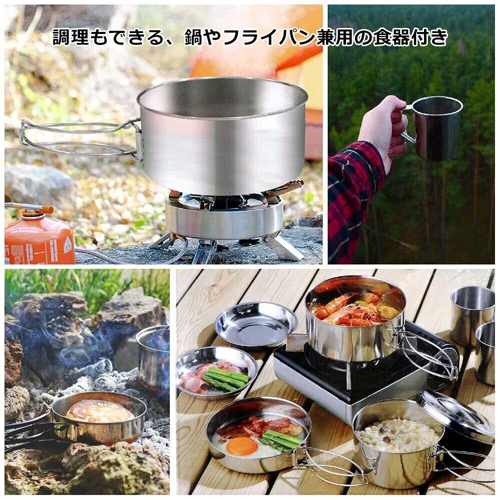 Samamixx アウトドアクッカー 14点セット キャンプ 鍋 皿 食器セット ステンレス メスキット コッヘル クッカーセット バーベキュー BBQ スタッキング可能 収納袋付き 2–3人に適応