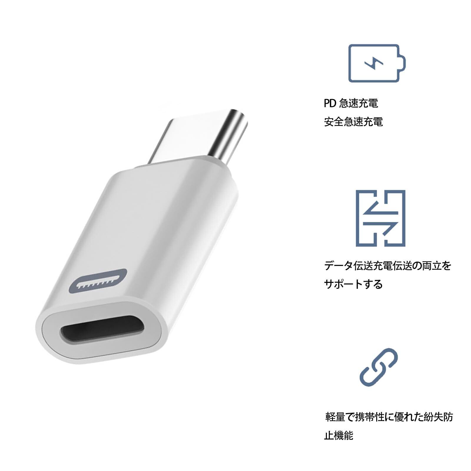 ライトニング 変換器→USB-Cアダプタライトニング (メス)変換USB Type C変換器アダプタPD充電対応iPhone 15シリーズGalaxy S 23 Note 20 Xperia One Pixel 7 OnePlus 8 iPad Pro Air 2021など(データ転送対応、充電対応) (2枚)