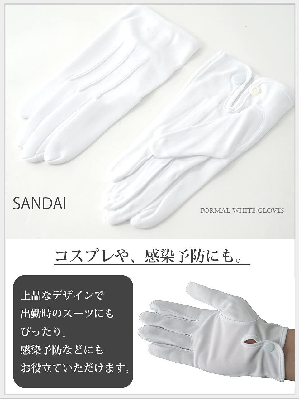 [SANDAI] ブラック 追加 礼装 用 フォーマル メンズ 白 手袋 ホック付き (S ~ 3L) 東レ 社製 ナイロン 使用 グローブ 1・2・ 3・ 4・ 5・ 10双セット | yankees