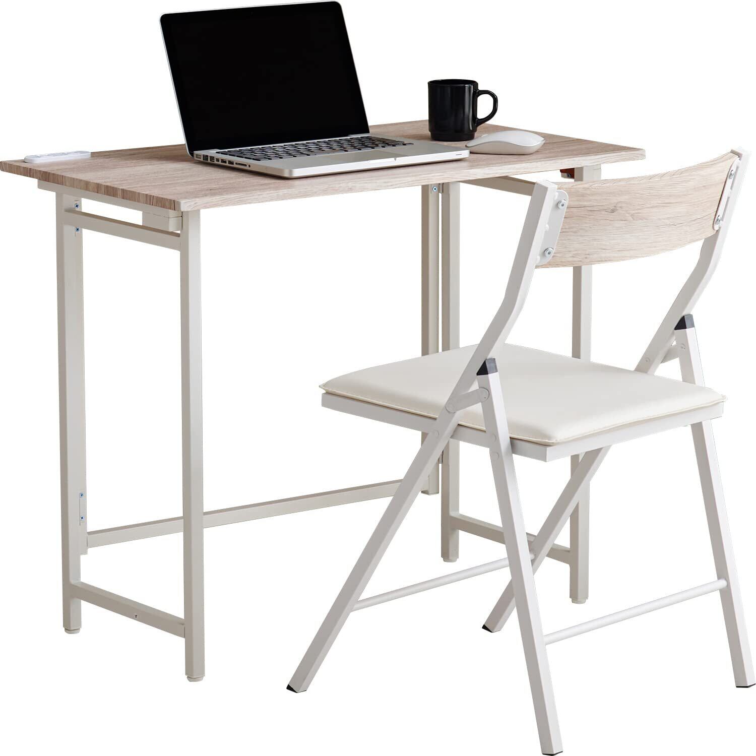 萩原(Hagihara) デスク セット チェア 椅子 折りたたみ 【クッションチェア】 コンセント 付き 1500W 幅80 奥行45 高さ72 勉強机 テレワーク ホワイト LDC-4778WH | yankees