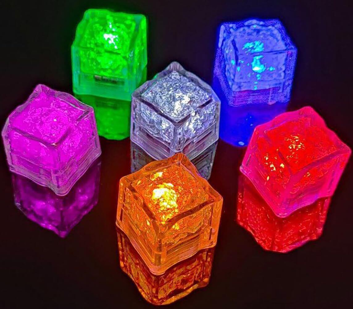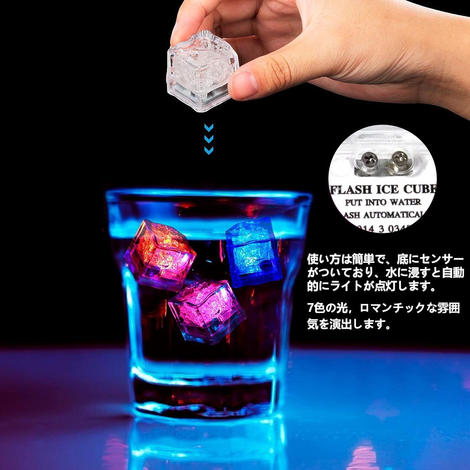 アイスライト カラフルに点滅するアイスライト 光る氷 LEDセンサーライト 光るアイスライト キューブアイス IP67防水 再利用可能 12個パック カラフルに点滅