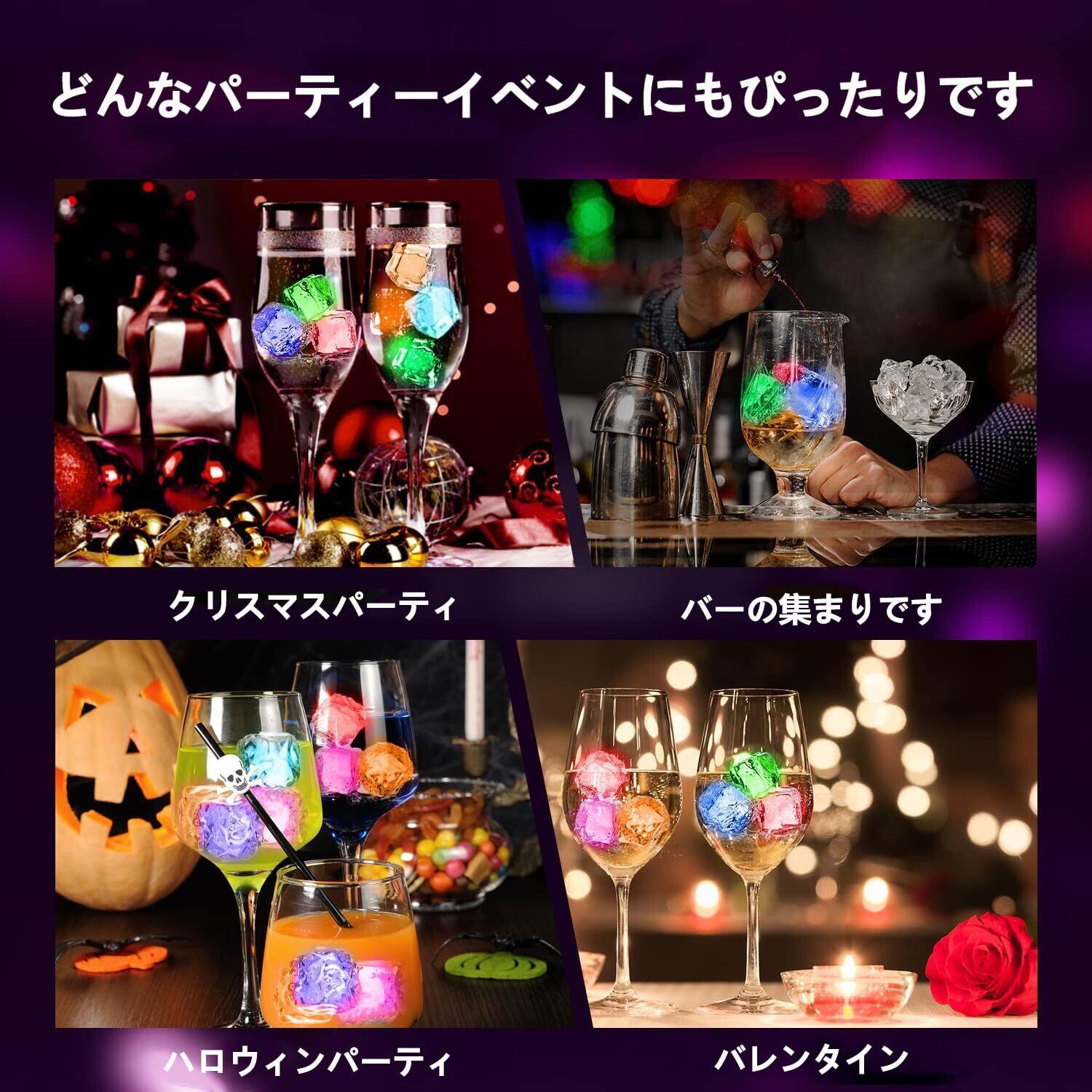 【発光・独特な雰囲気】バー、パーティー、披露宴、フェスティバル、ショー、誕生日、プレゼントなどに最適です。このLED七色光る氷は、どんな液体の中に入れても発光するため、面白いです!どんな集まりにも独特の雰囲気をもたらすことができます。