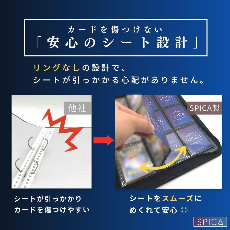 SPICA 9ポケット カードファイル カードバインダー コレクションファイル 横入れ式 チャック付き トレーディングカード 360枚 大容量 収納 トレカ カード 収納 保管 コレクション (ブラック)