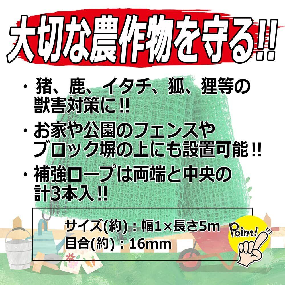 セフティー3(Safety-3) アニマルネット 補強ロープ入 目合16mm 幅1m×長さ5m