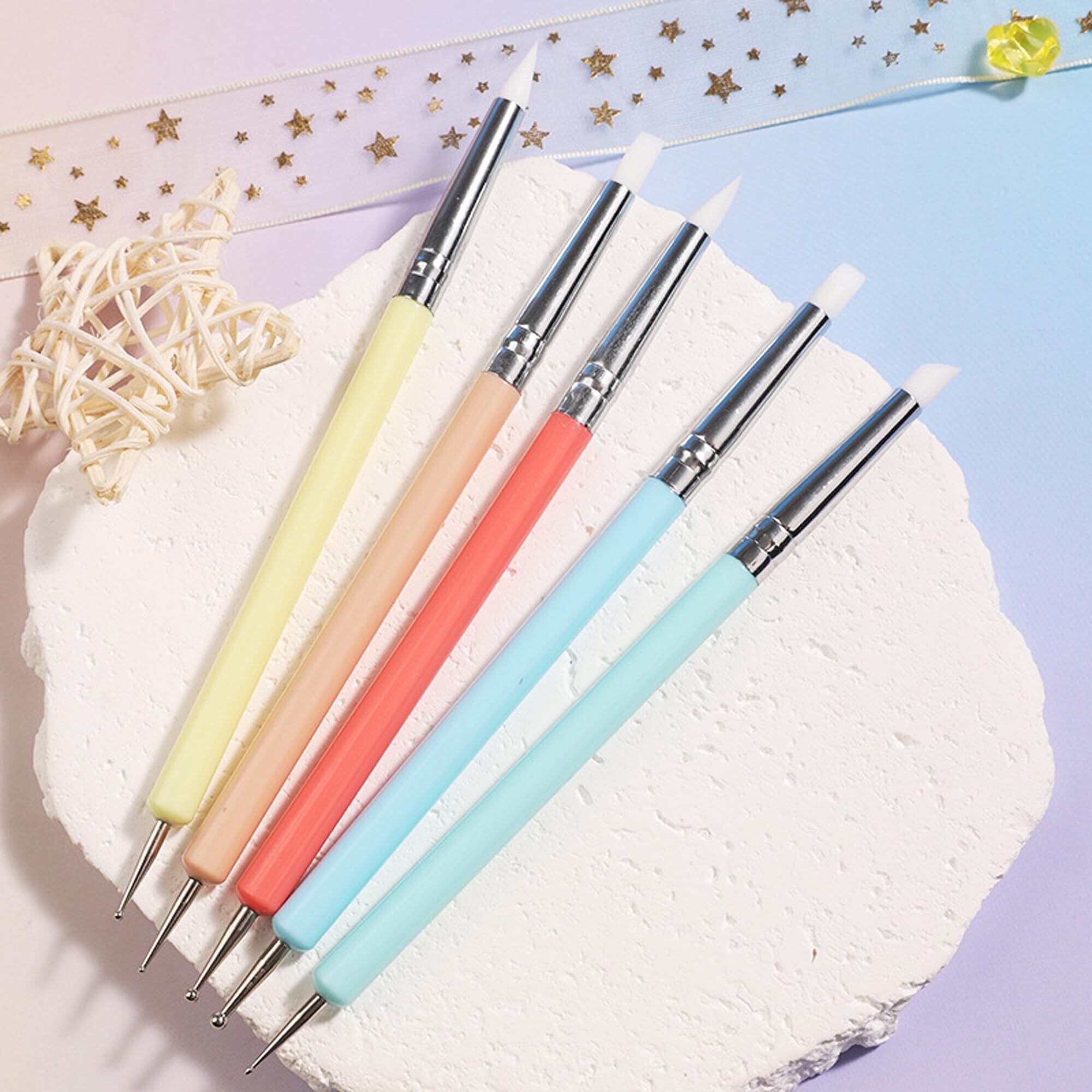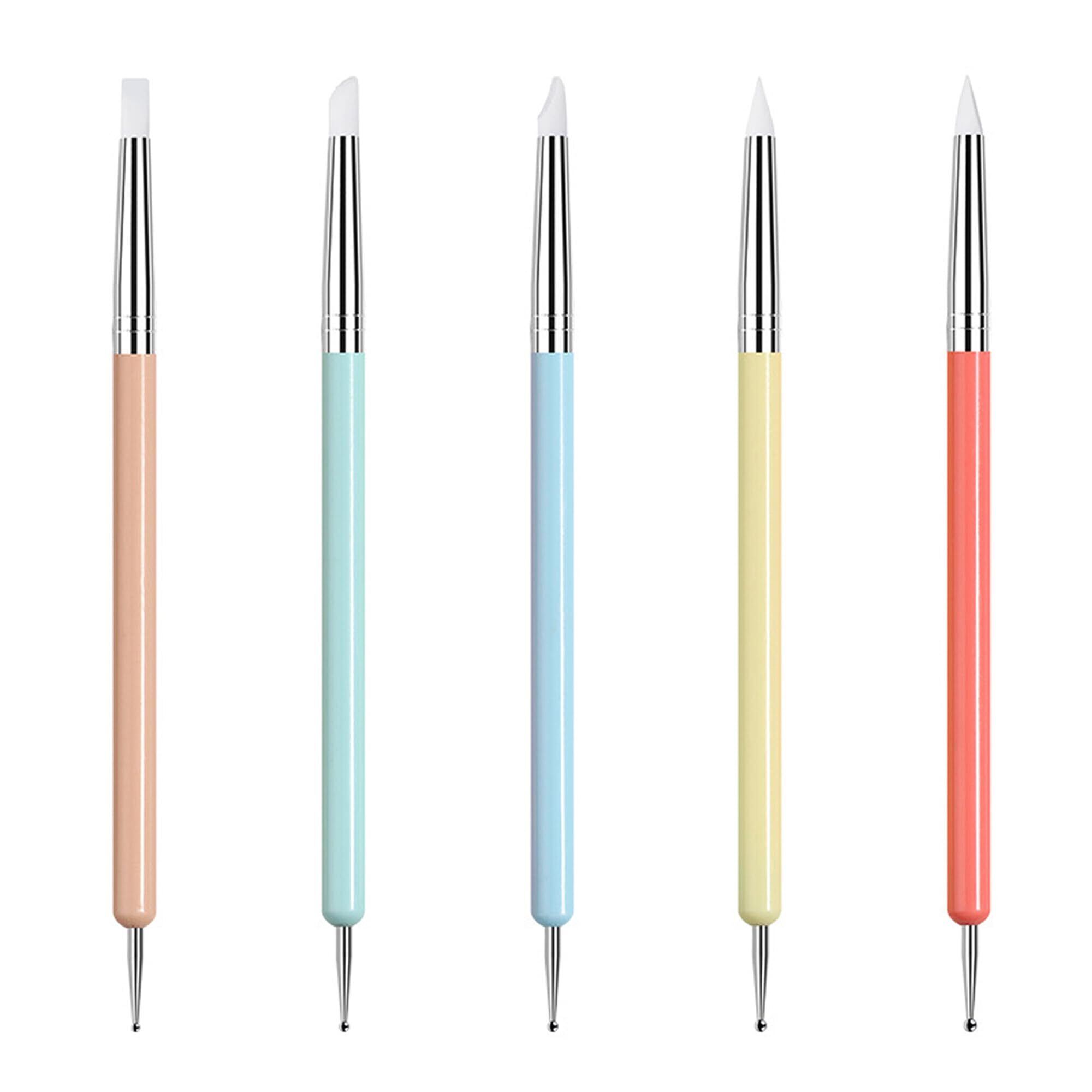 シリコンブラシ ドットペン 5本セット ジェルネイル 筆 ネイルブラシ ネイル 筆 ネイルアートツール 点描ツール 爪用ペン 簡単 シンプル 耐久性 マニキュアツール セルフネイル ネイル用品 ドット棒 レジン デコ ジェル マニキュア 収納袋付き | yankees