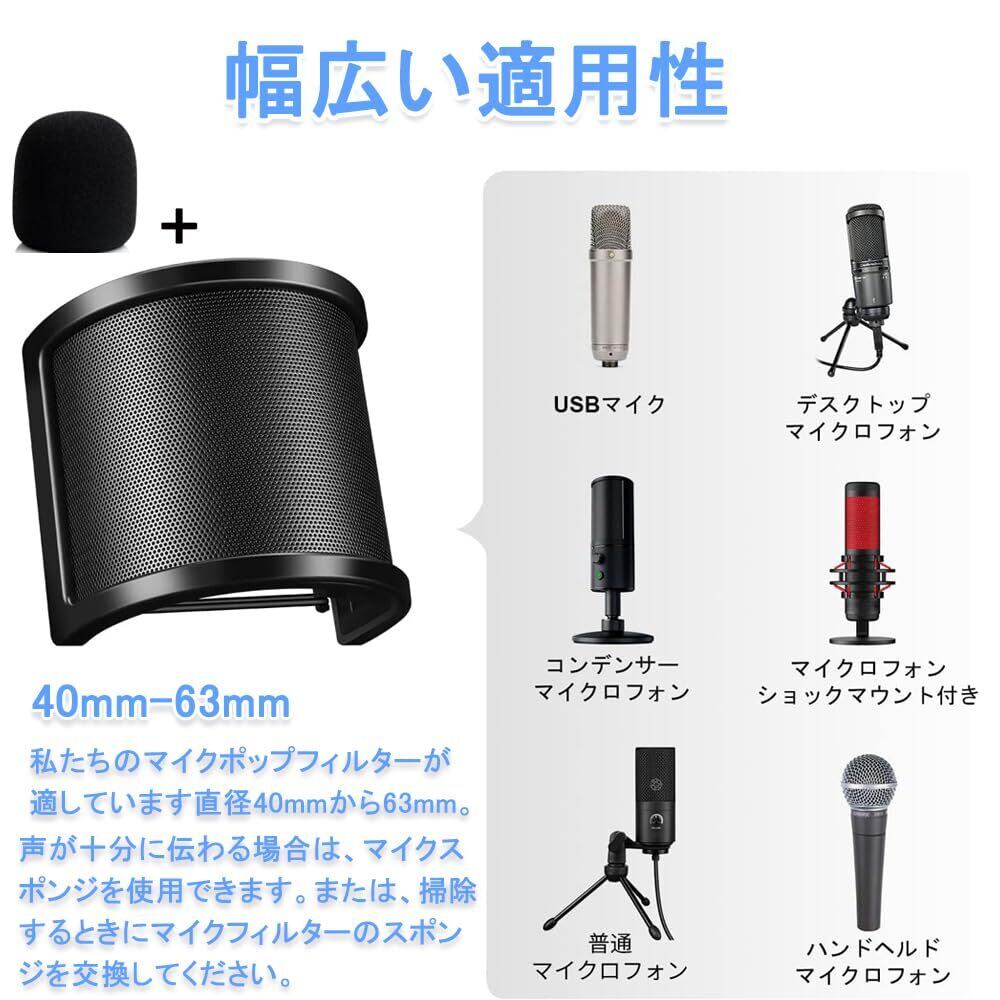 2024 ポップガード マイクポップガード マイクスポンジ プロシンガー監修 マイクカバー リフレクションフィルターノイズ防止 スポンジ層搭載モデル 金属+スポンジ弾性ゴムバンド付 Φ40~63mmマイク対応 U型マイクカバー (スポンジ層あり 黒) | yankees