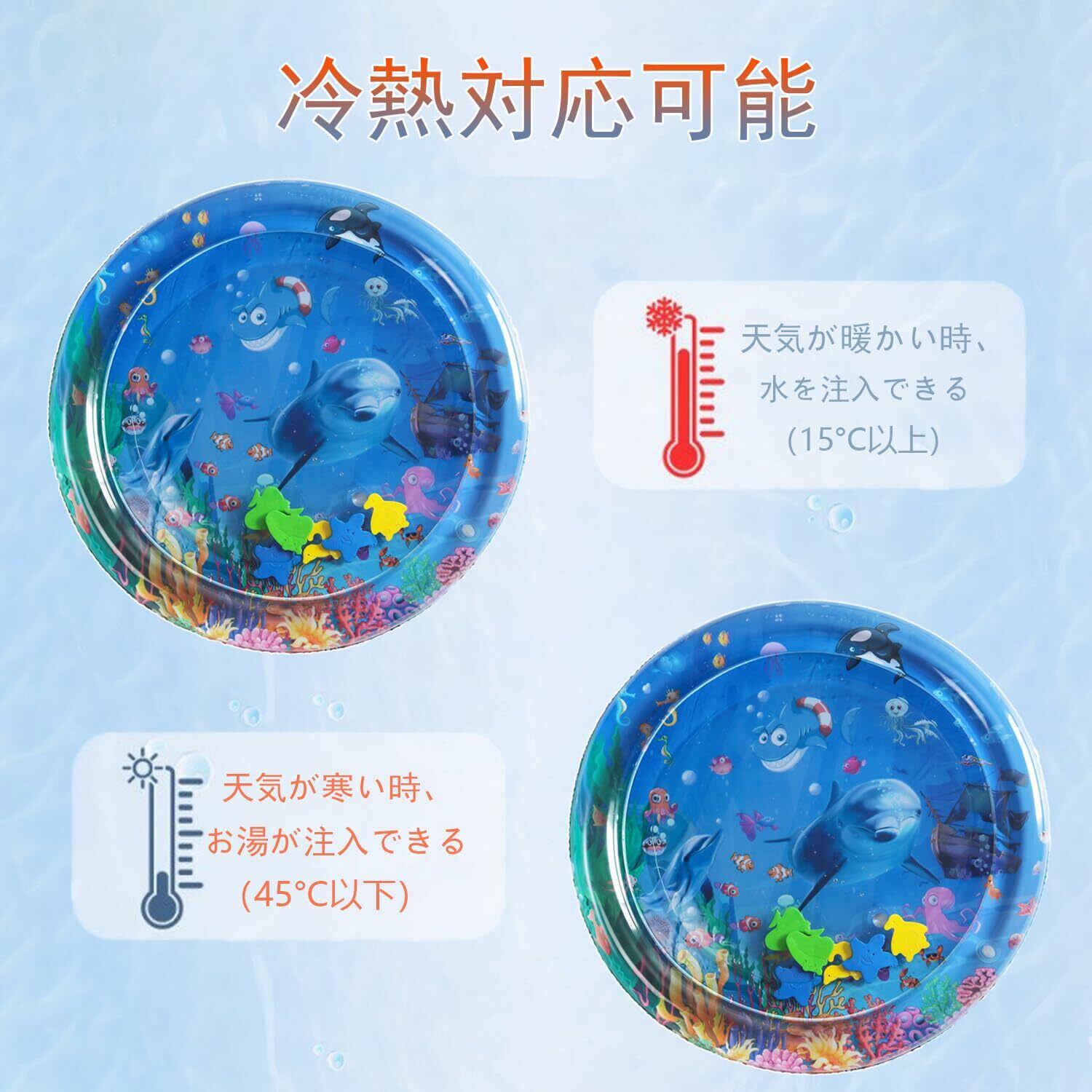 商品仕様:猫用感覚ウォーターマットのサイズは60*60cm丸形です。注意:ご使用の時、マットの容量の1/3まで空気または水を入れてください。