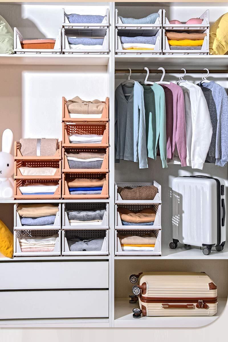 【 超安定&スライド可能】収納ボックスは高密度の合成樹脂(ポリプロピレン)を採用して、型が崩れにくい、そして両側に頑丈な取っ手が付きで、耐荷重も優れて非常に耐用です。耐荷重20kg以上(一個あたり)、使用するときは何個のボックスを積み重ねることができます。引き出し式で、スムーズにスライドでき、衣類を探しやすい、取り出しやすい。