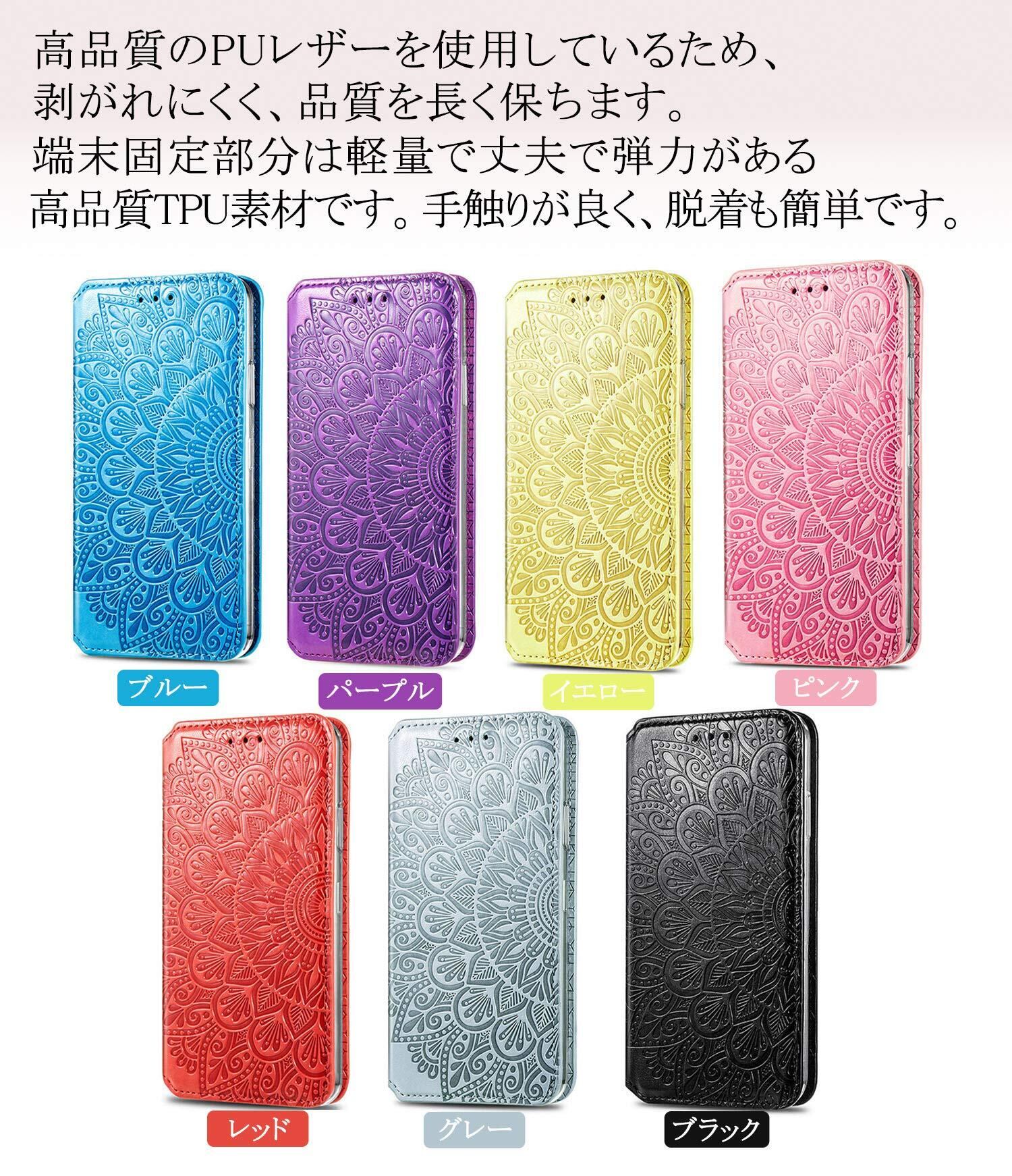 【素材】高品質なPUレザーを採用した手帳型 ケース、キズや汚れに強く、放熱性や耐衝撃が良い。端末固定部分は柔軟のあるTPU素材を使用。手触りが良く、脱着も簡単です。