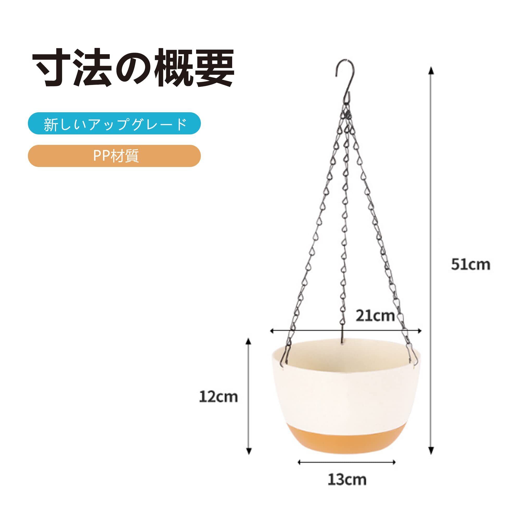 【サイズ】:吊り下げ鉢のサイズは20.5*20.5*12.5 cmです。チェーンサイズは51 cm。