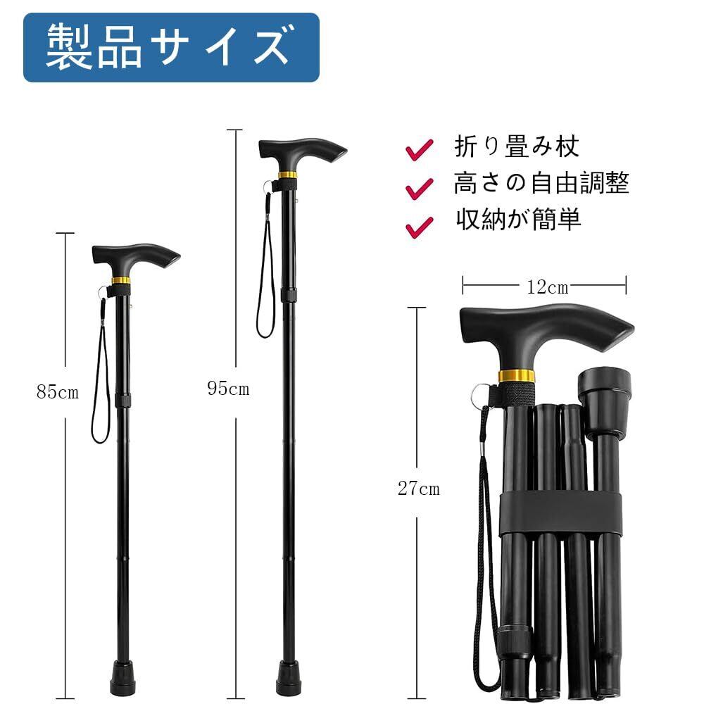 折りたたみ杖 折りたたみ ホルダー 伸縮式杖 歩行支援 アルミニウム製 超軽量 携帯に便利 男性 女性 おしゃれ 伸縮 5段階調整 85-95cm 歩行補助杖