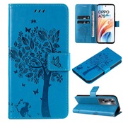 【Kawasina】OPPO A79 5G ケース 手帳型 おしゃれ 猫 蝶々 内蔵マグネット カードポケット スタンド機能 オッポ A79 5G ケース 防塵 軽量 耐衝撃 全面保護 (ブルー, OPPO A79 5G)