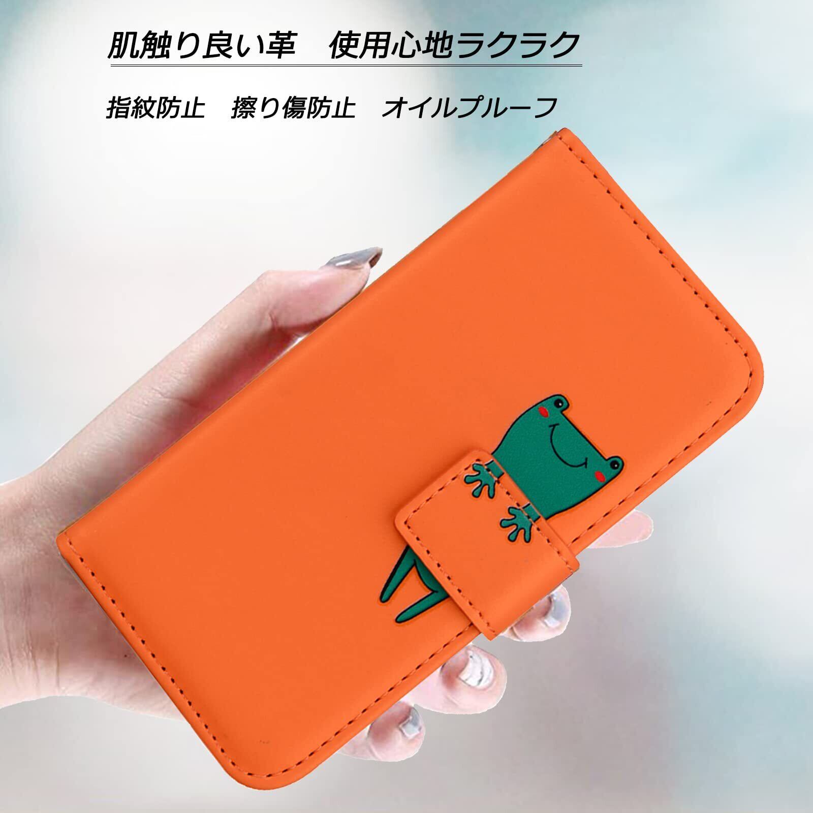 Galaxy A55 5G ケース手帳型 SC-53E SCG27 ケース手帳 サムスン ギャラクシーA55 カバー SC53E 手帳型ケース スマホケース galaxy a55 case SCG27 携帯ケース 携帯カバー レザー製 TPUケース 財布型 ベルトマグネット スタンド機能 カエル かわいい 動物柄 薄型 防水 黒 (Samsung Galaxy A55 対応) オレンジ