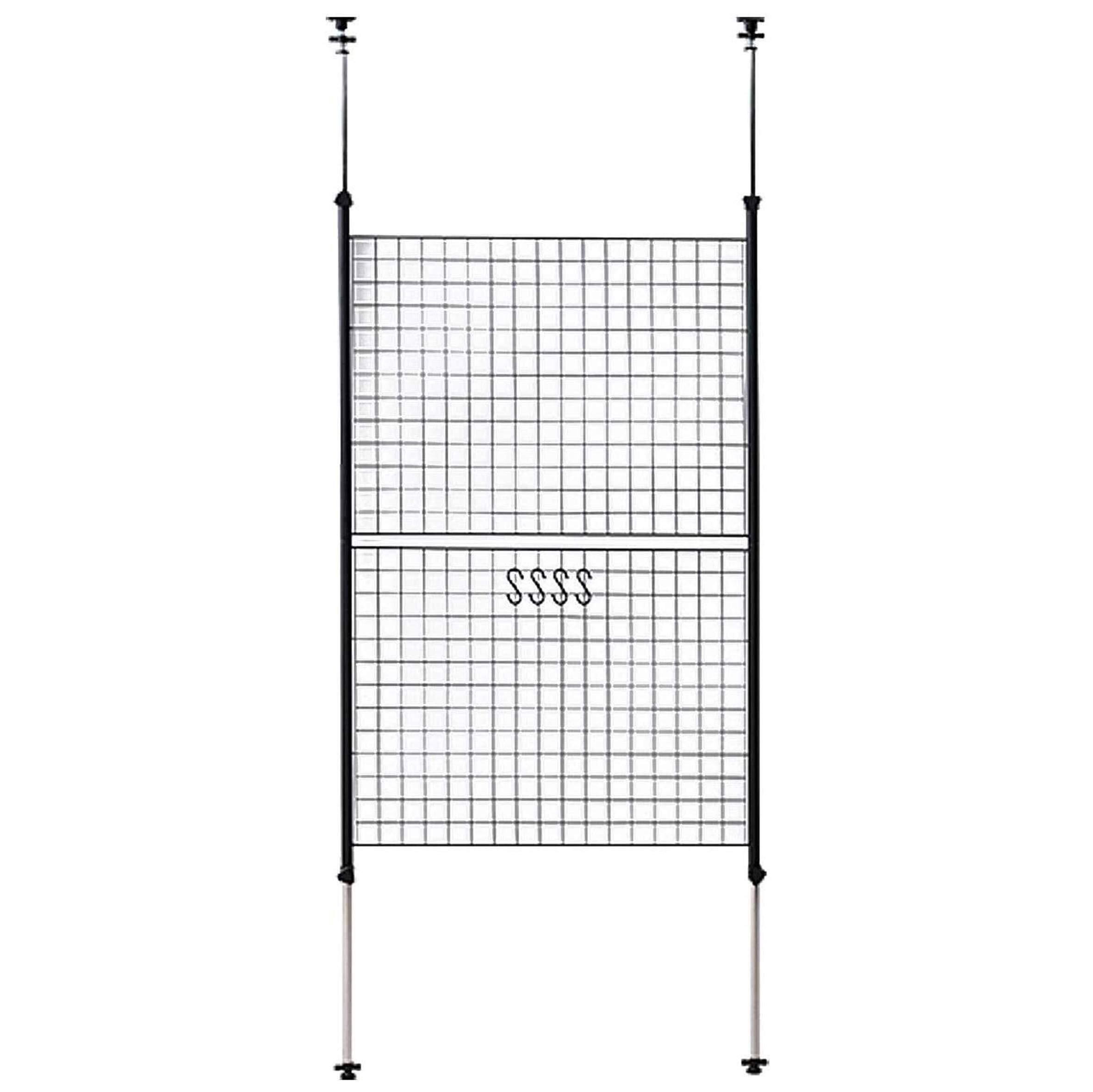 山善(YAMAZEN) 突っ張り パーテーション (ワイヤータイプ) 幅90×奥行5×高さ166.5-295.5cm (フック4個付き) 壁掛け 収納 壁面収納 天井 間仕切り 組立品 ブラック SP-90(MBK) | yankees