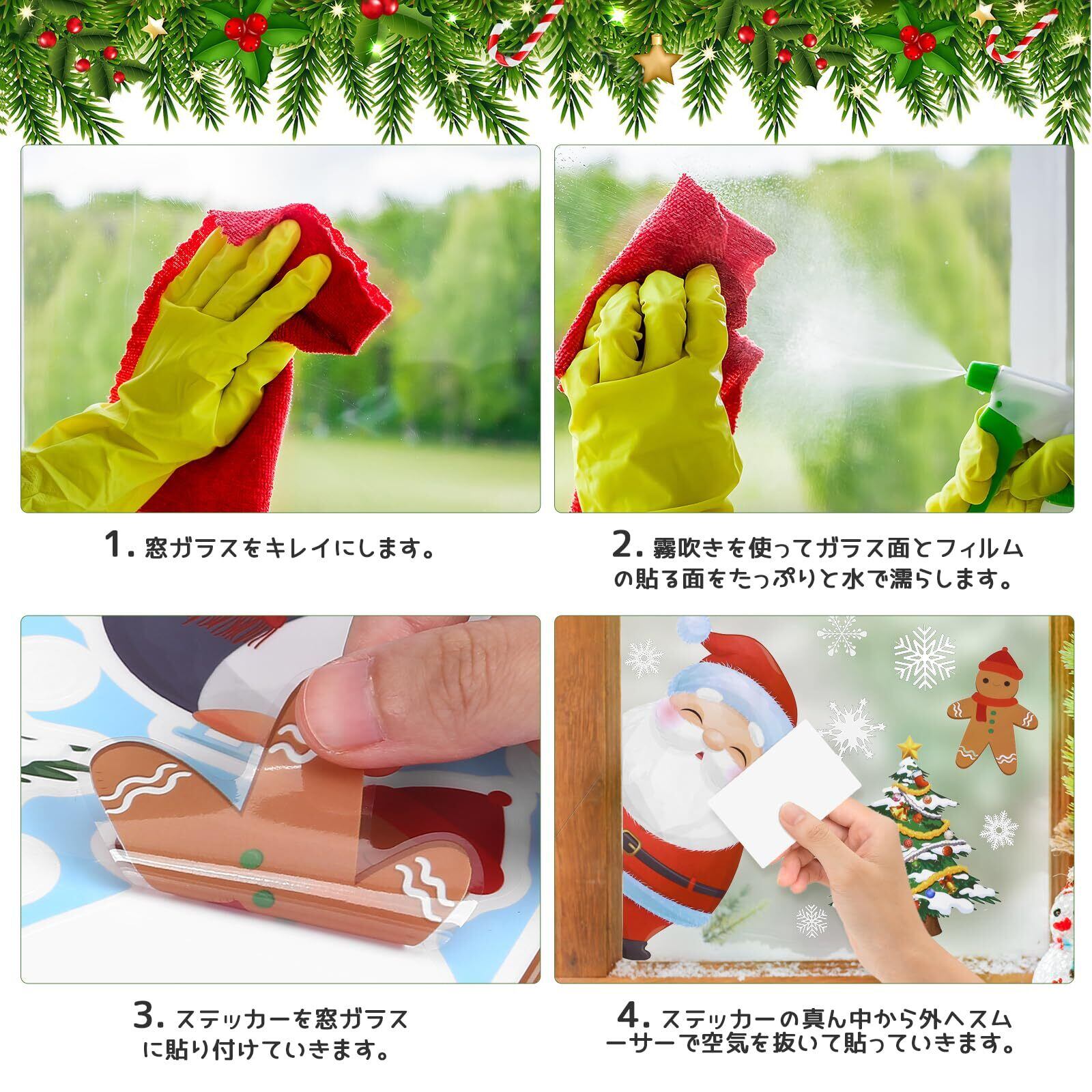 【貼り方簡単】のり不要で、水を一吹きして、ガラスに貼り付けるタイプのクリスマスステッカー、子供でも自由にアレンジして飾れます。クリスマスプレゼントにしても喜ぶことは間違いです。