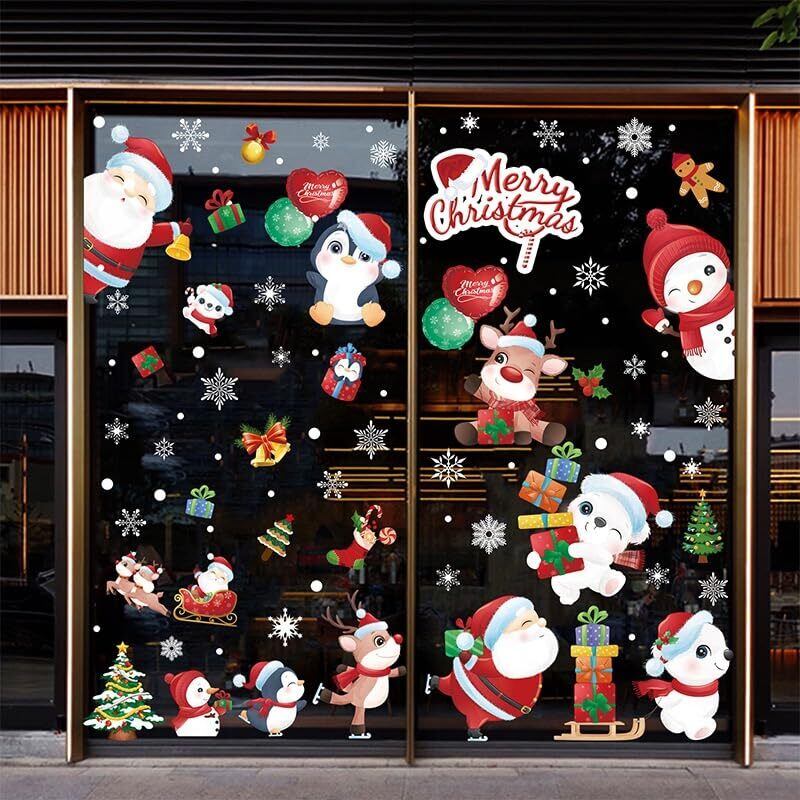 【大容量168点入り】雪の結晶・サンタ・トナカイなどクリスマスっぽいデザインたっぷり入ってる静電気ステッカー、このセットだけで窓を可愛くなります!カンタンに店舗やお部屋が一気にクリスマスに変身