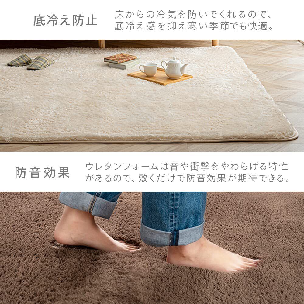 材質 表地:ポリエステル100%、カットパイル毛足長さ:20mm、裏地:不織布(PVC滑り止め加工)、詰め物:ウレタンフォーム(10mm)