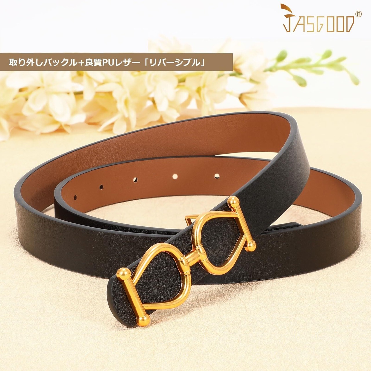 [JASGOOD] ベルト レディース リバーシブル 両面使用可能 革 細ベルト ドレスベルト ビジネス/カジュアル 彼女、母の日にプレゼント