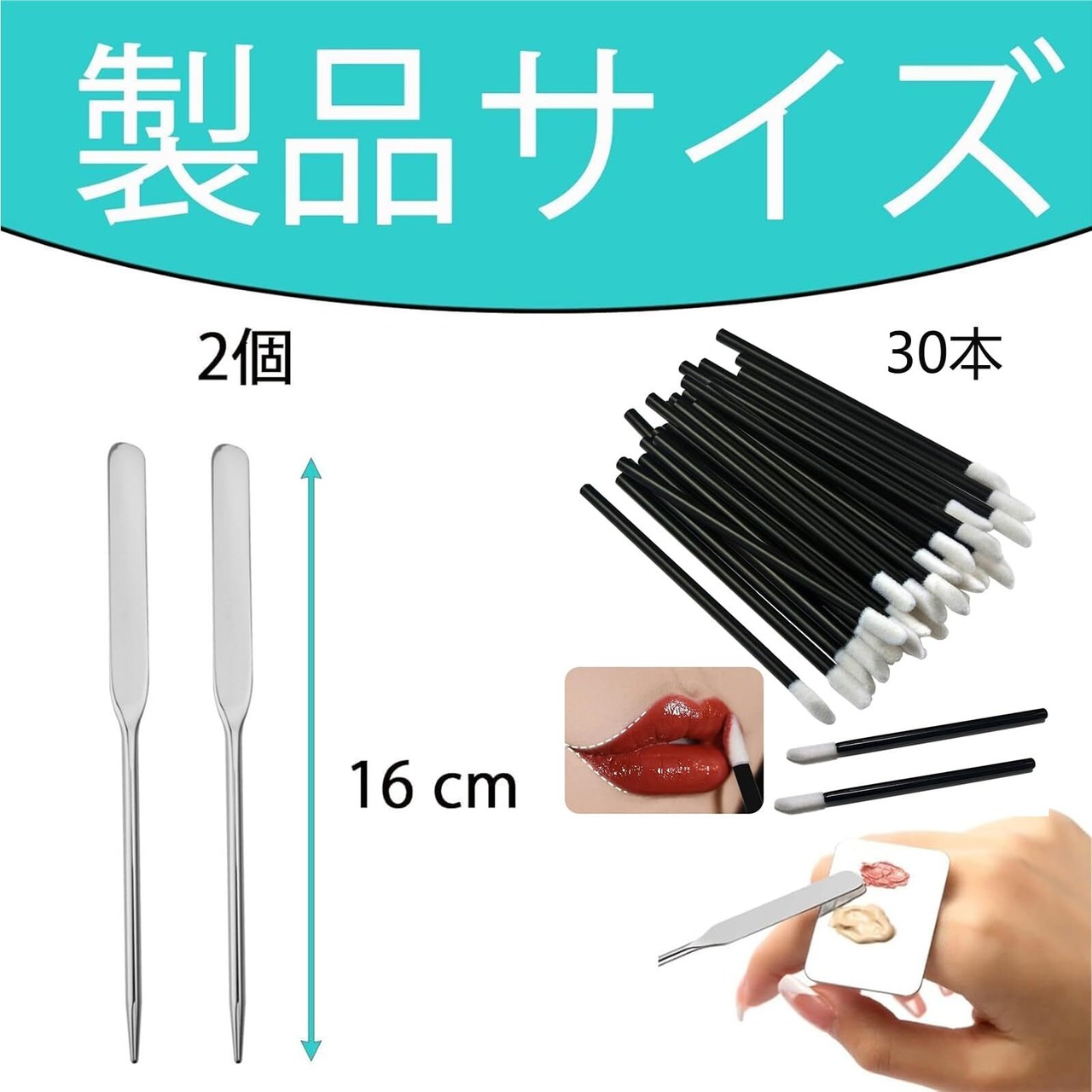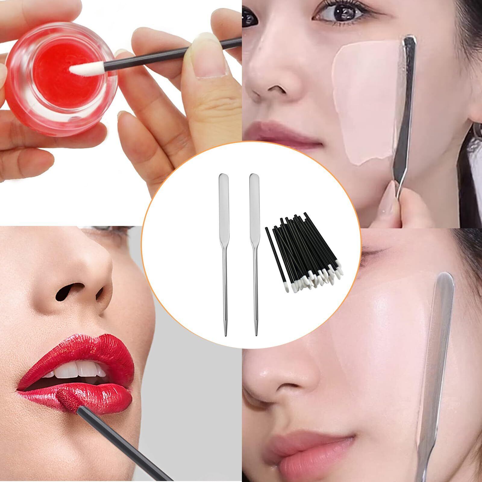 2個 スパチュラ メイク30本リップブラシ 使い捨てリップブラシ化粧品ツールメイク スパチュラステンレス鋼ファンデーション スパチュラコンシーラー 化粧品用