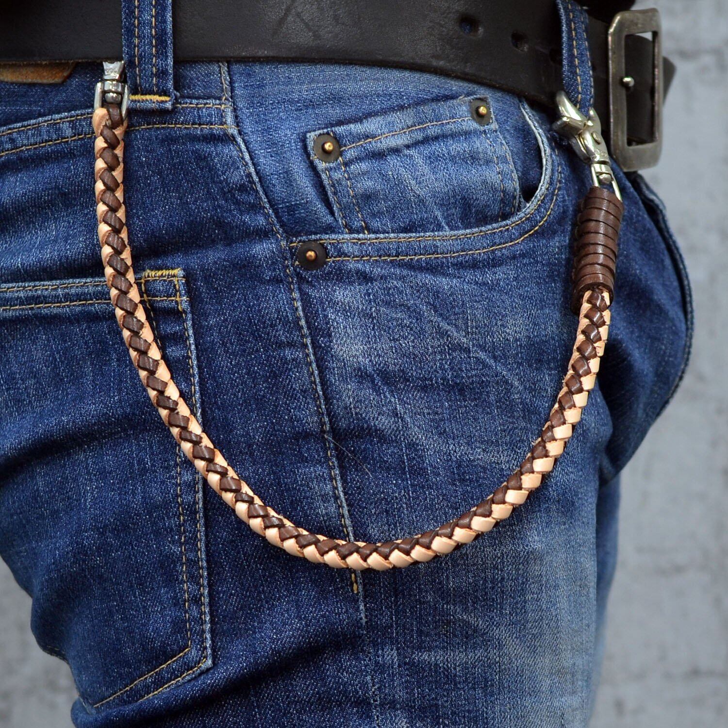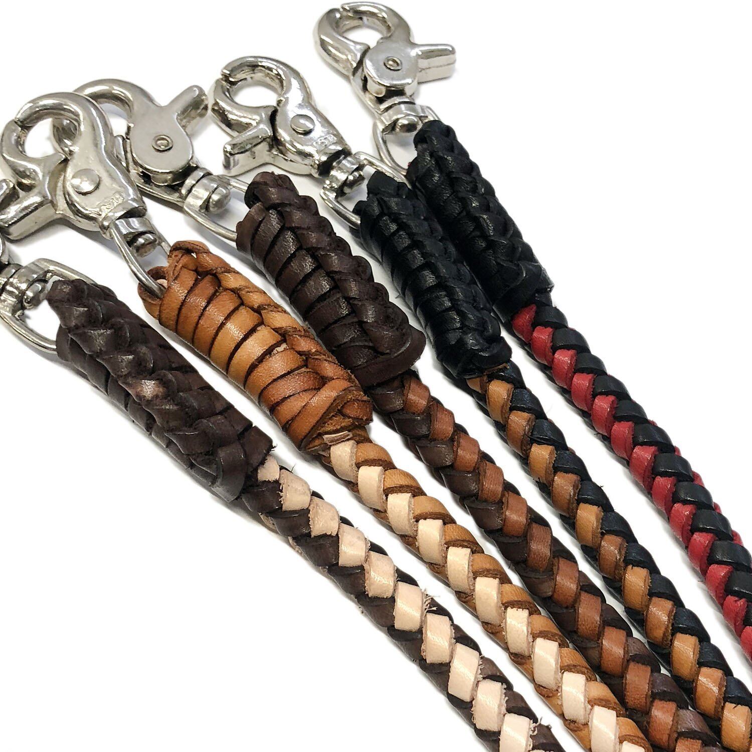 [ブルージェムズ] 【本革】 Handmade 手編み ショート レザー ウォレットチェーン バイカー THWC-008