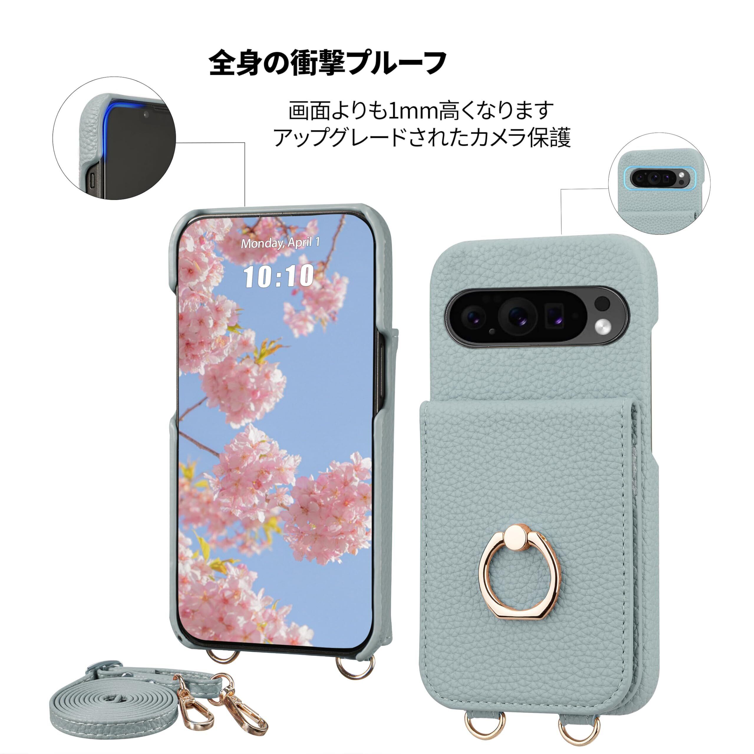 For Google Pixel 9/9 Pro ケース 手帳型 グーグルピクセル9 ケース ショルダー Google Pixel 9 カバー 手帳型 Googleピクセル9 Pro ケース 肩掛け 斜め掛け(長さ調整可能) 背面カード収納 化粧鏡付き スタンド機能(リング付き) Pixel9 ケース ミラー付き (オータムブルー)