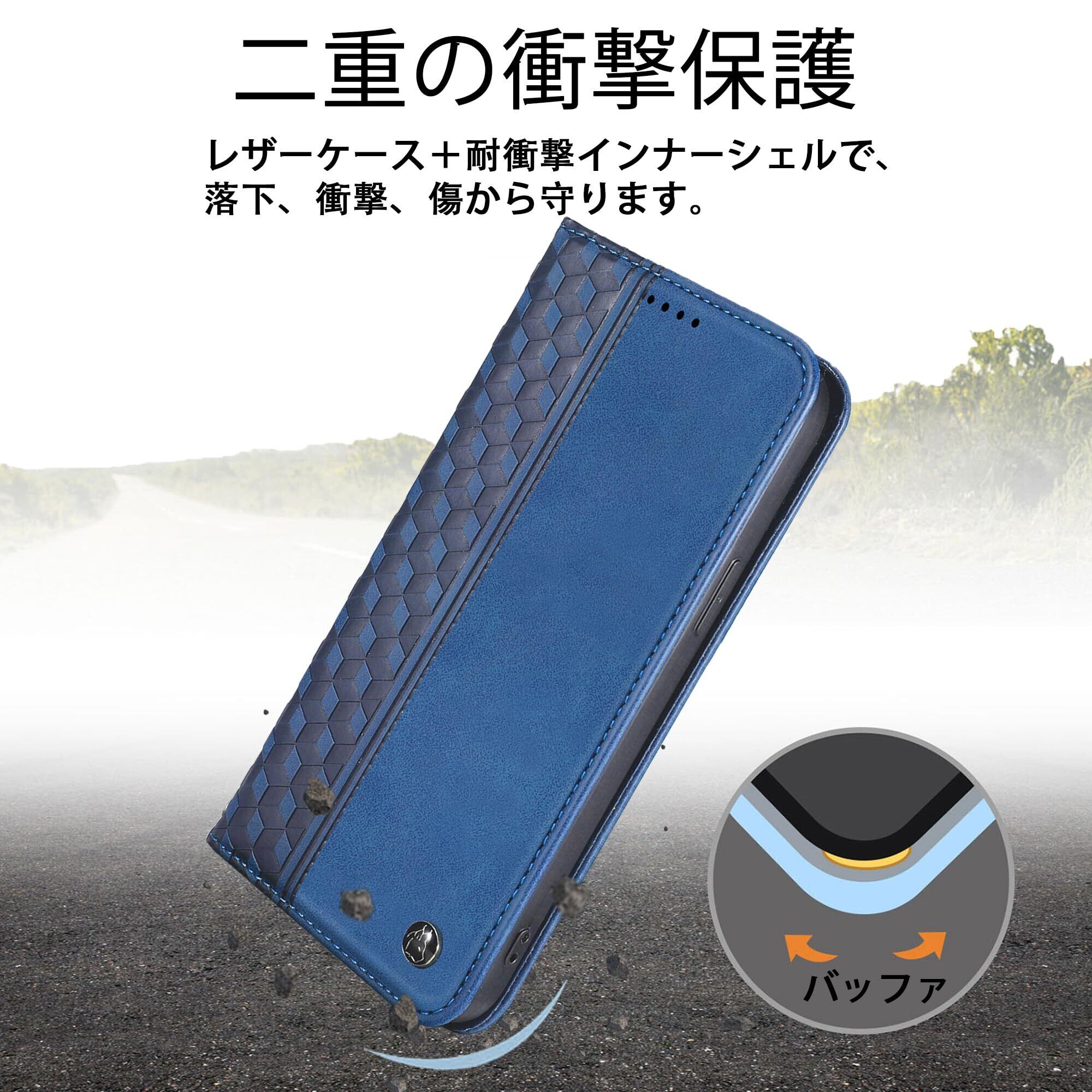 iPhone 16 ケース 手帳型 アイフォン16 ケース iPhone 16 手帳型 ケース ひし形柄 iPhone16 ケース 手帳型 マグネット式 スタンド機能 iPhone 16 携帯カバー カード収納 財布型 iPhone 16 スマホケース 軽量 薄型 全面保護 耐衝撃 6.1インチ対応 - ブルー