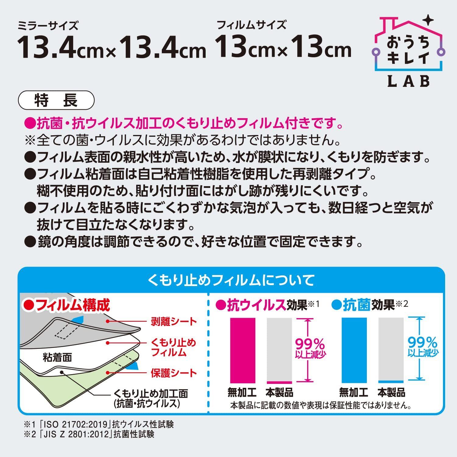 【素材】●くもり止めフィルム:PET ●鏡:ガラス ●フレーム:スチロール樹脂 ●脚部:ABS樹脂