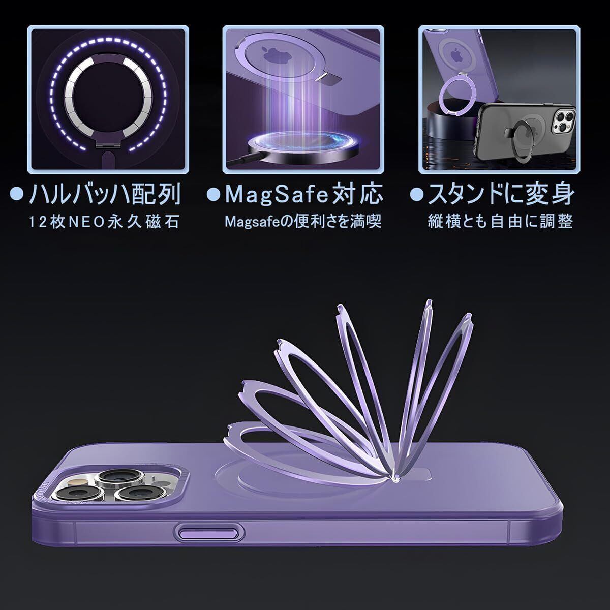 【リング・スタンド・磁力】3つの機能を一体化した多機能なiPhone15用ケースです。iPhoneを手持ちするとき・立てるとき・充電するときと、どんなときも快適な使い心地を追求。1台でマルチに活躍する、多機能タイプを選びたい人におすすめです。