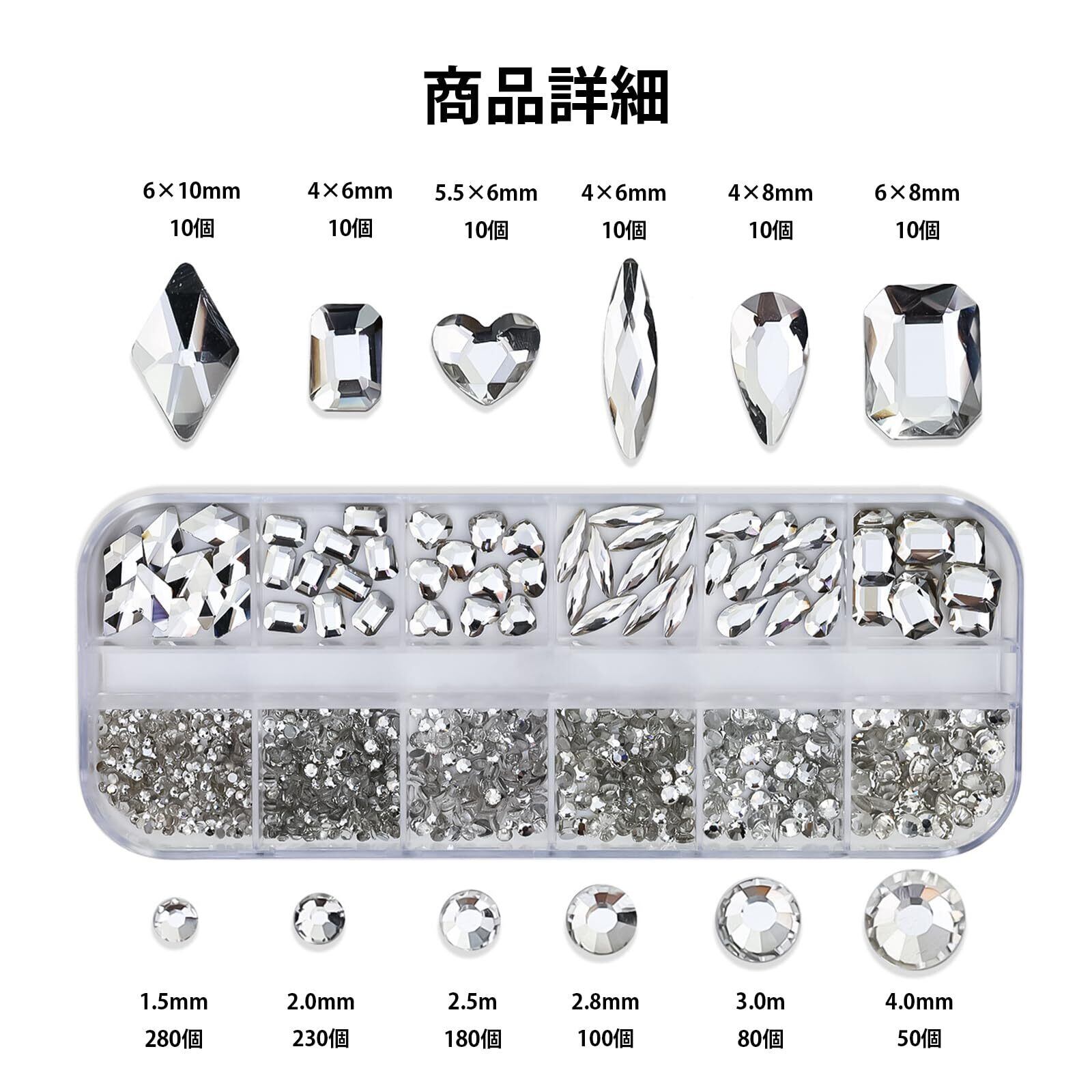 【豊富な形のラインストーン】 ラインストーンネイルストーンには12種類の異なる形状とサイズのクリスタルホワイトダイヤがあります。さまざまなネイルデザインをDIYしたり、装飾としても最適です!