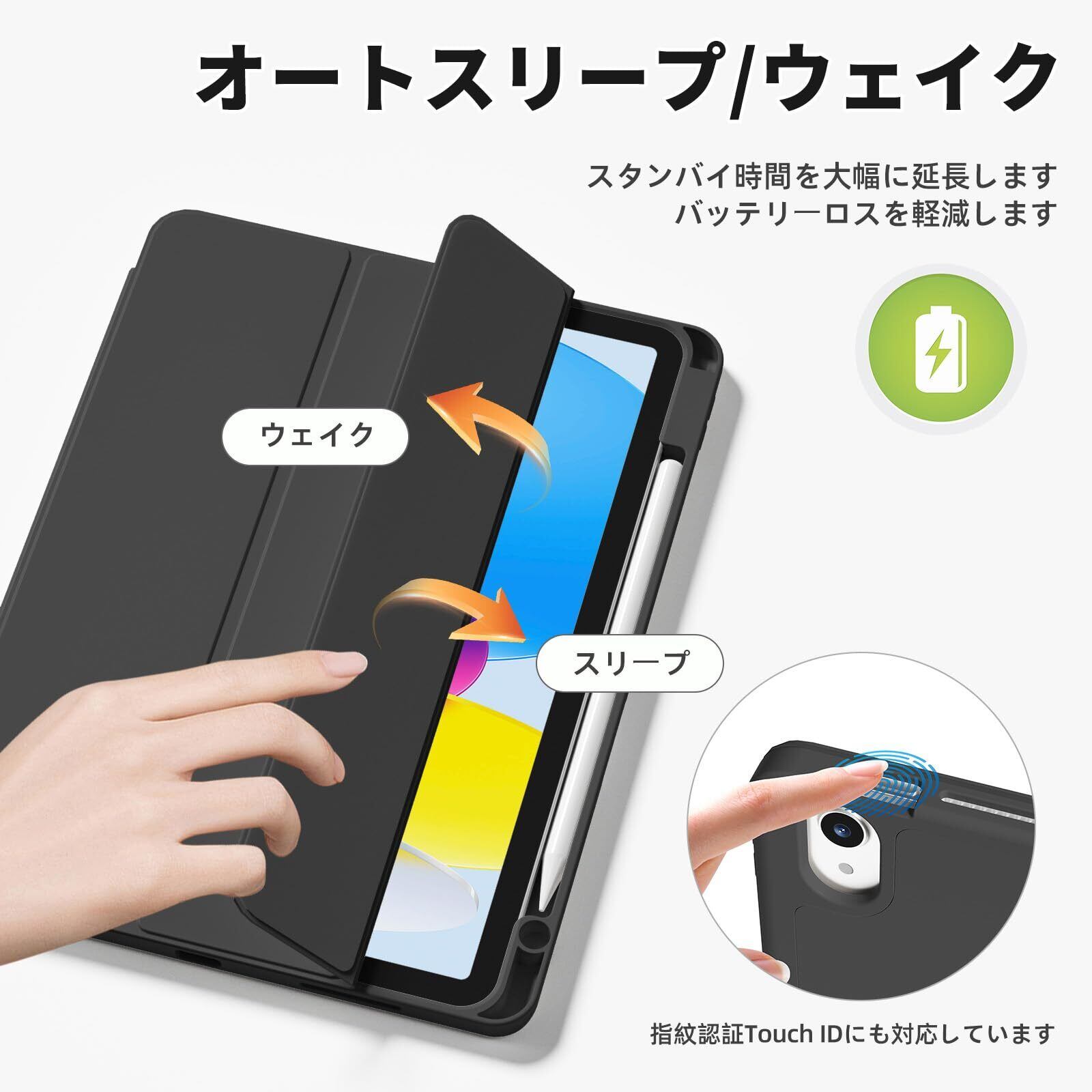 【オートスリープ/ウェイク機能とTouch ID】iPad Air 11インチ(2024)、iPad Air 第5/4世代(2022/2020)ケースはオートスリープ/ウェイク機能サポートします。ケースを開けるとiPadがウェイクになって、ケースを閉じるとiPadがスリープ状態になります。スタンバイ時間を大幅に延長し、バッテリーロスを軽減します。また、Touch IDもサポートします、快適にiPadを楽しむことができます。