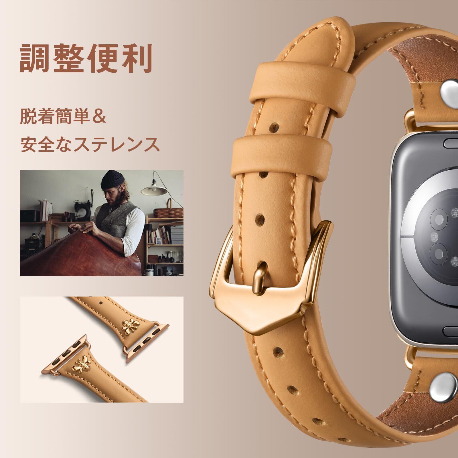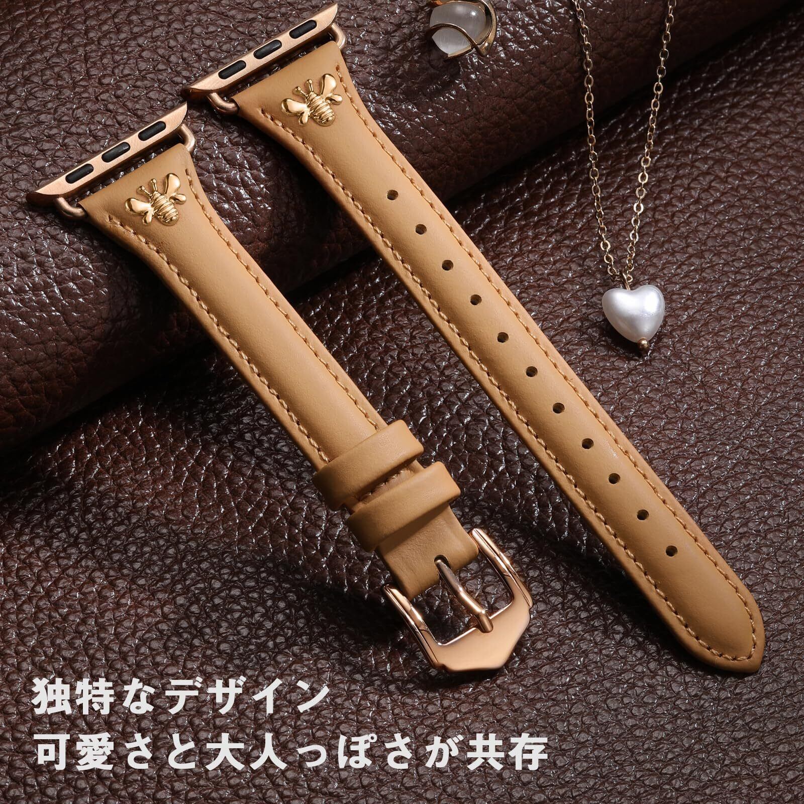 [Maledan] アップルウォッチ用 バンド レディース 本革 細身 ビー飾り付き 可愛い 洗練 レザー 交換ベルト38mm 40mm 41mm 42mm 44mm 45mm 46mm Series 10/9/8/7/6/5/4/3/2/1/SEに対応 柔らかい 女性向け ビジネス カジュアル