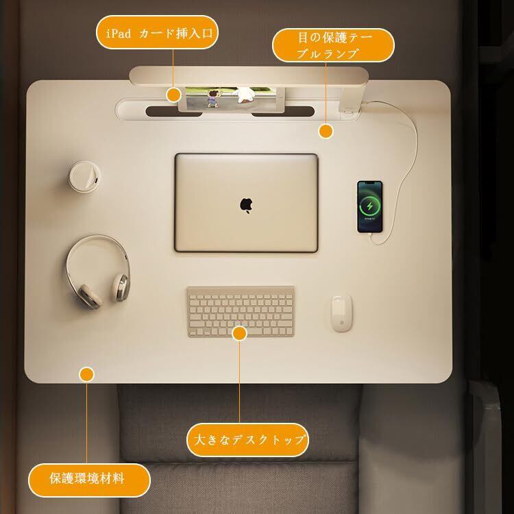 【多機能折りたたみテーブル】読書灯付属しています、折りたたみテ ーブルには、2*USBポート・タブレットスロット(最長辺の27CMを超えないタブレットに適用)があって、ラップトップ やスマホやタブレットに充電するのが便利です。ホームオフィスや寮の勉強に最適です