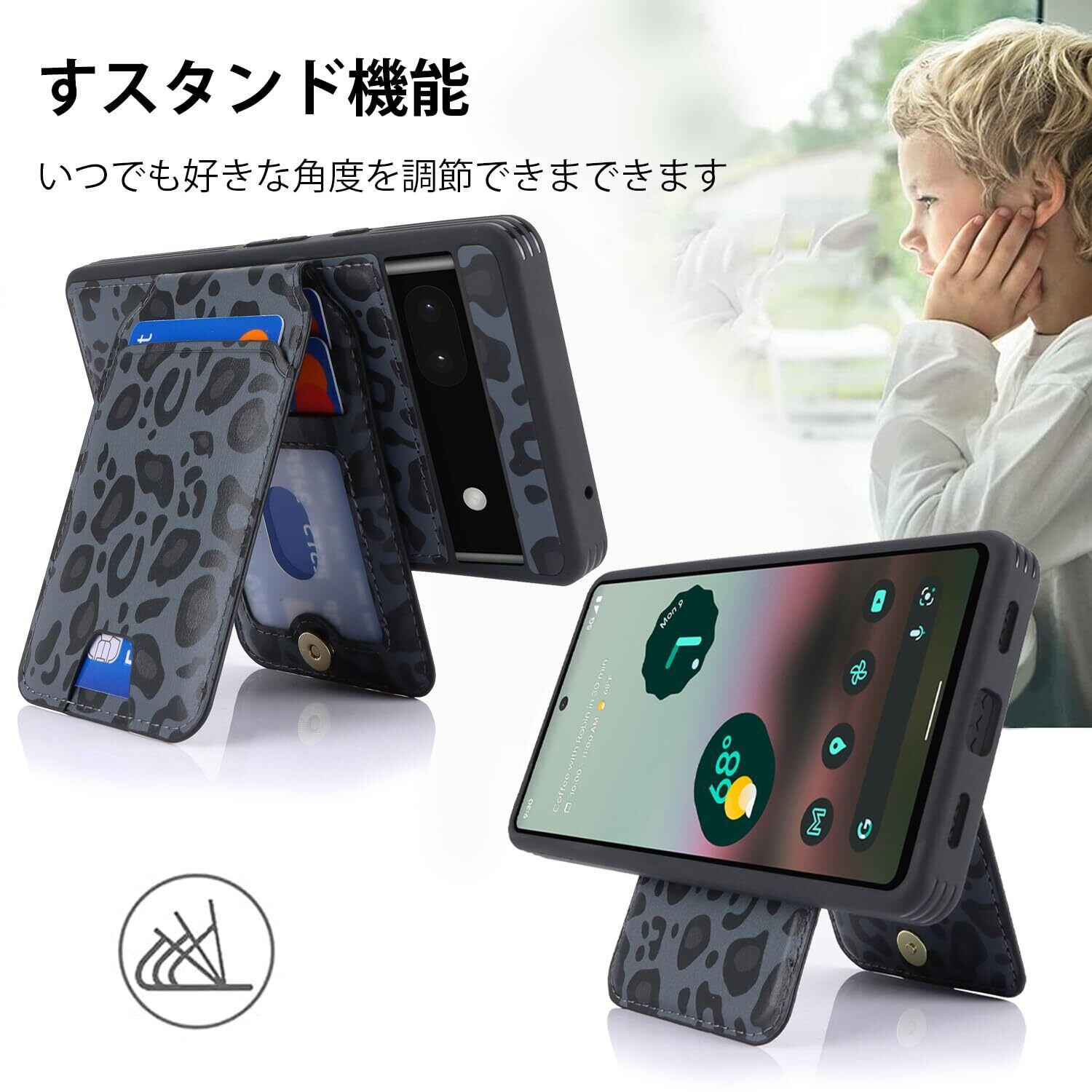 Havaya Pixel 6a ケース MagSafe 対応 グーグルピクセル6a ケース Google Pixel 6a ケース MagSafe 対応 耐衝撃 au 背面 カード収納 docomo [分離式] softbank 取り外し可能 スタンド機能 レザー-ブラック (ヒョウ柄)