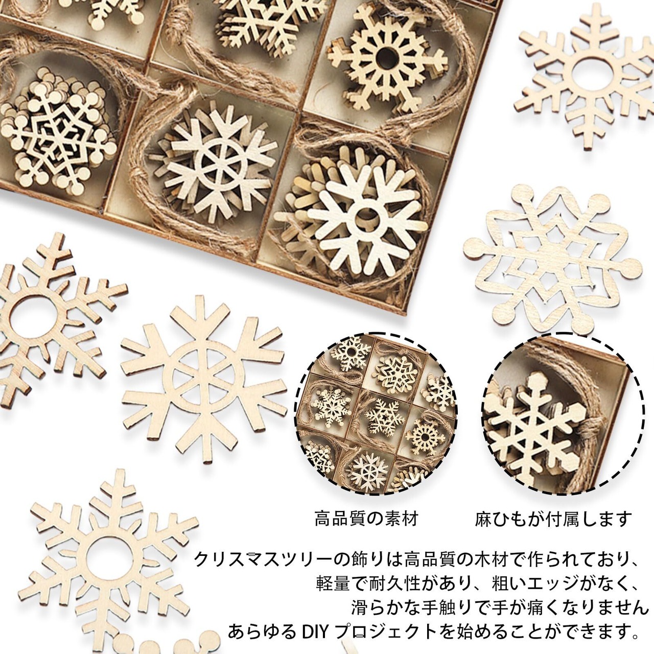 クリスマス オーナメント 飾り 45個 雪の結晶 木製スライス 木材チップ クリスマスツリー 飾り ペンダント 北欧 手作り DIY クリスマス デコレーション 小物 麻紐付き