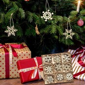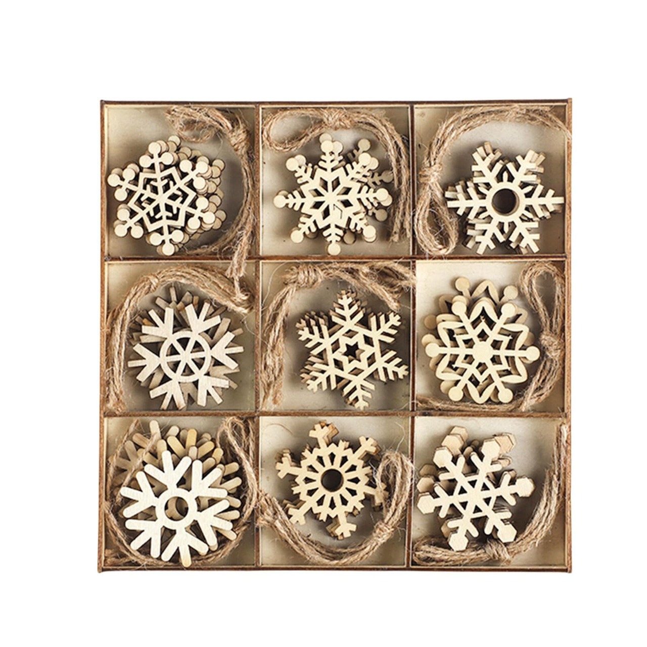 【クリスマスツリーオーナメント】 クリスマスツリーを飾る木製のオーナメントです。 雪の結晶の形をした9種類のデザインがあり、キュートで楽しいクリスマスの雰囲気を演出します。