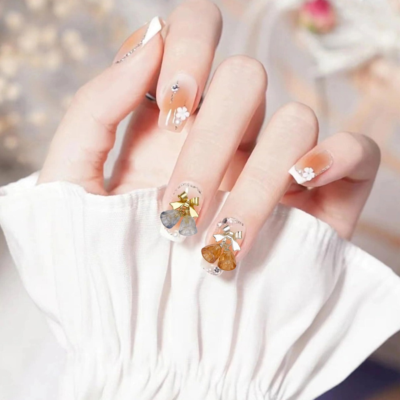 【可愛いデザイン】可愛いベルのデザインがクリスマスの雰囲気を演出します。 ゴールドとシルバーのリボンがとても繊細です。 ミニサイズで、ネイルにとても美しい装飾が施されています。