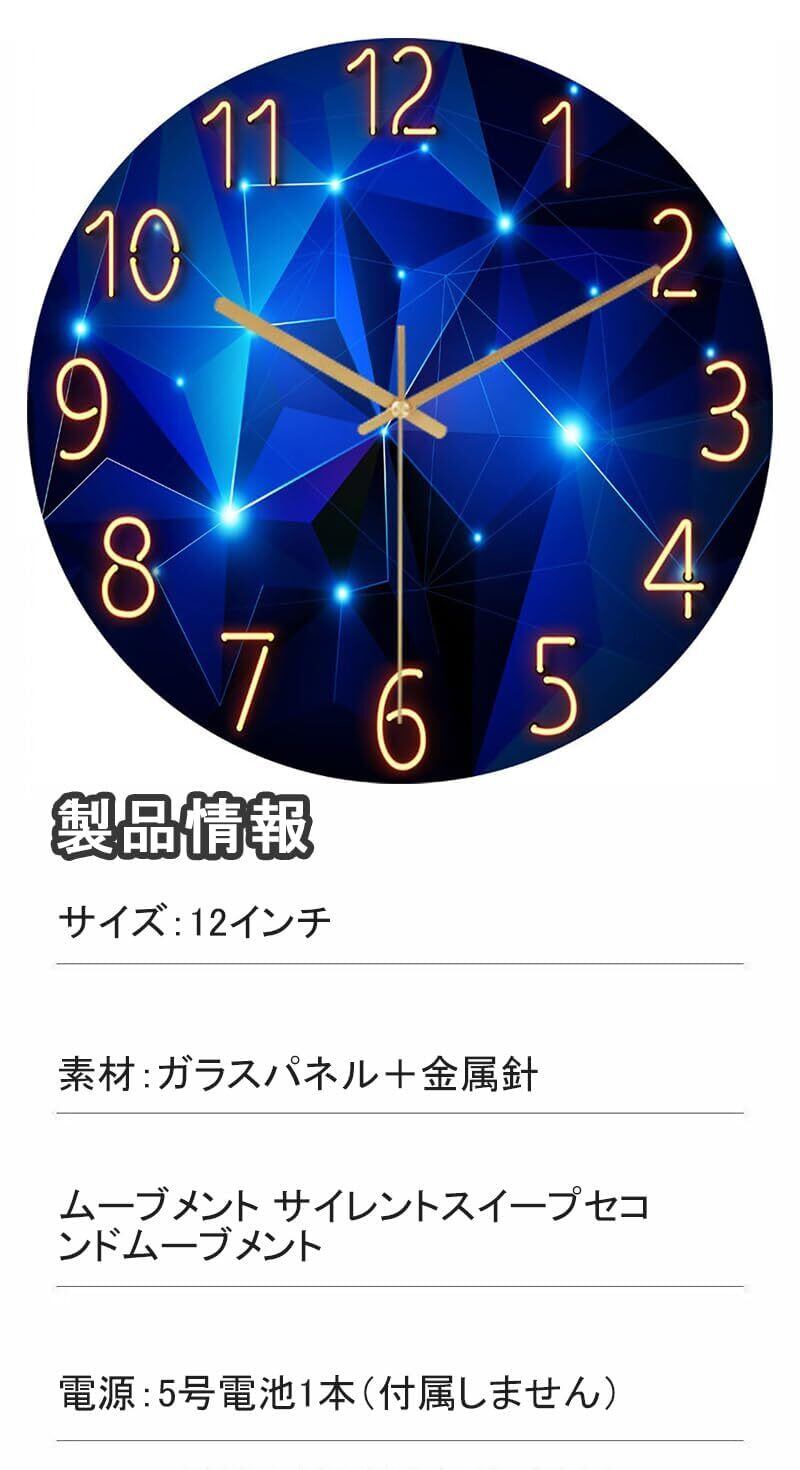 掛け時計 4mm超薄型 ガラスパネル おしゃれ インテリア 時計 壁掛け かけ時計 モダン 静音 連続秒針 星空 丸型 ウォールクロック デジタル 大数字 見やすい wall clock 12インチ living room 寝室 装飾(ブルー星空) | yankees