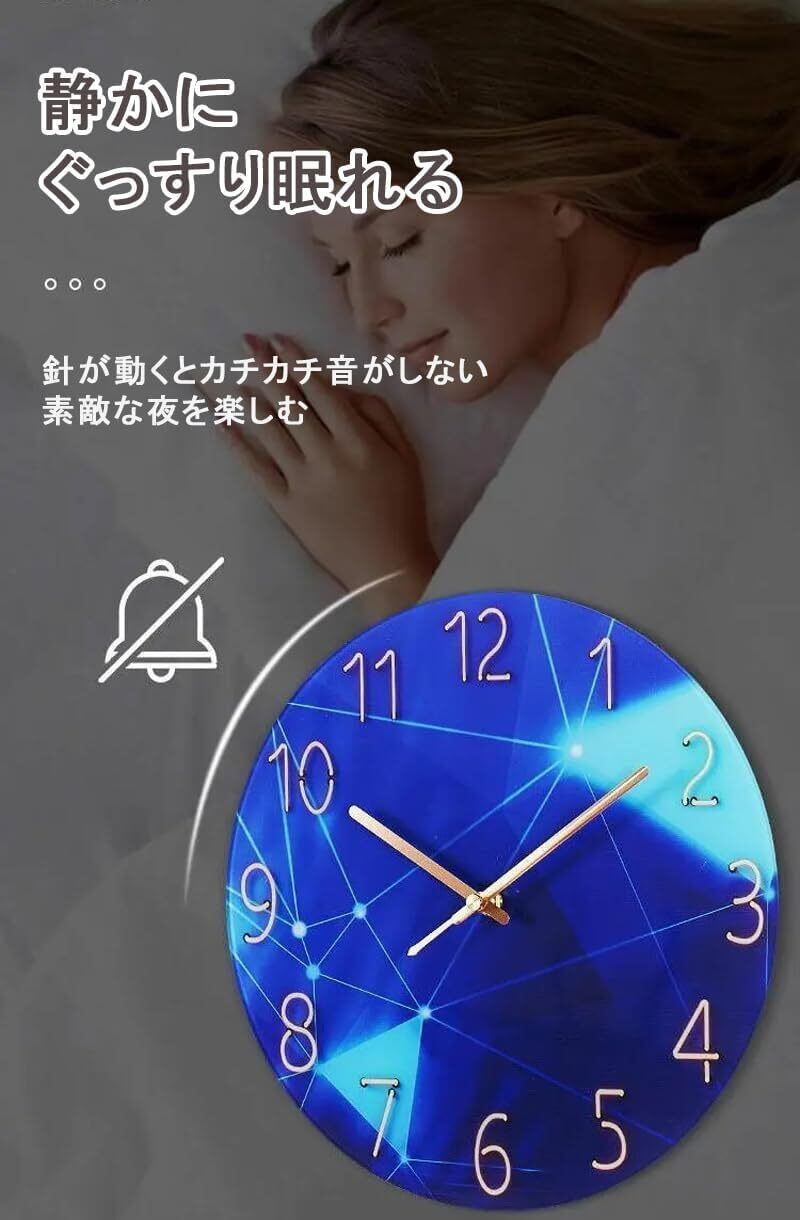掛け時計 4mm超薄型 ガラスパネル おしゃれ インテリア 時計 壁掛け かけ時計 モダン 静音 連続秒針 星空 丸型 ウォールクロック デジタル 大数字 見やすい wall clock 12インチ living room 寝室 装飾(ブルー星空)