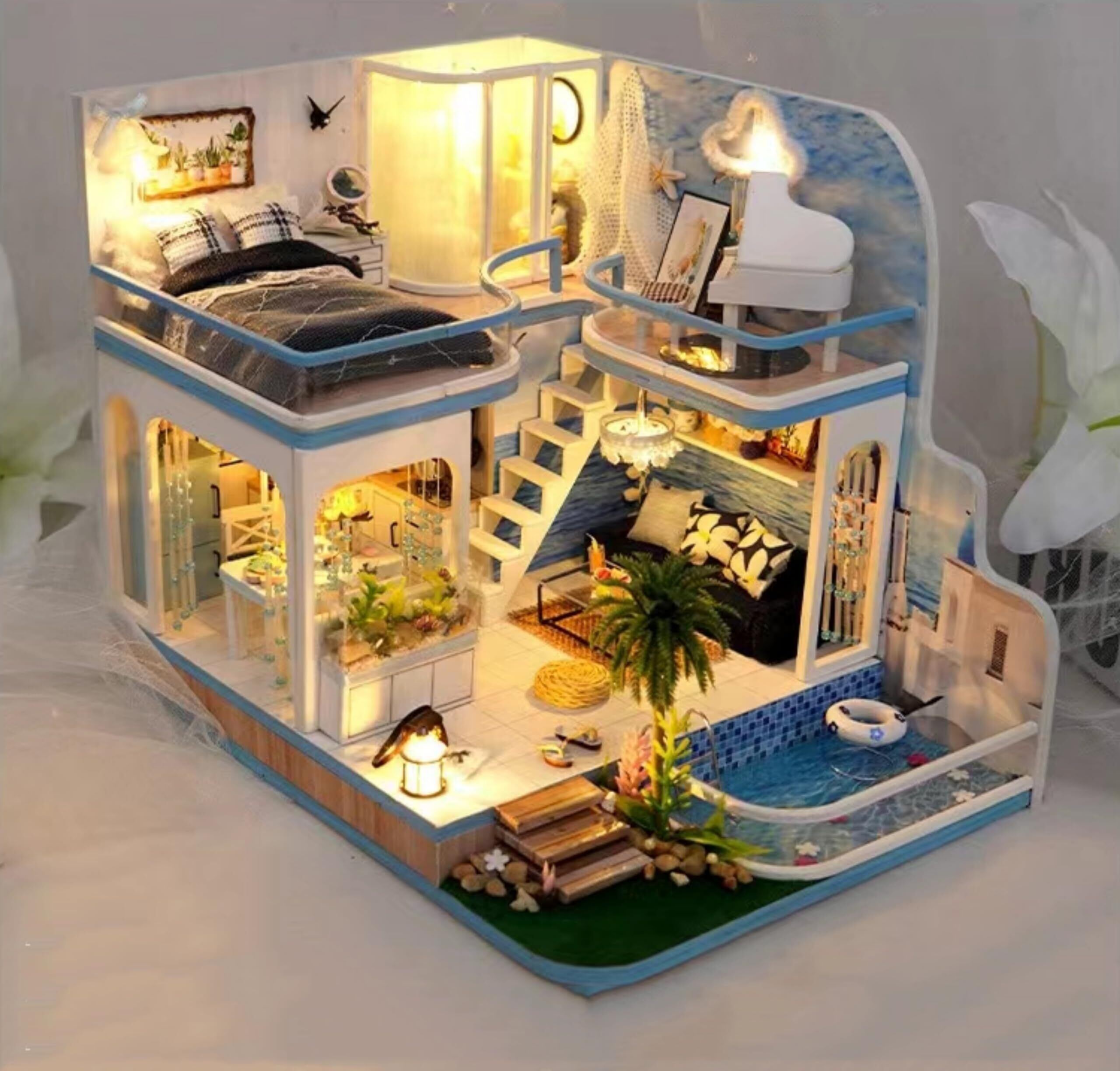 ドールハウス 手作りキットセット ミニチュア ミニ家具工芸品キット 防塵ケース付き 「威藍印记」 TD42