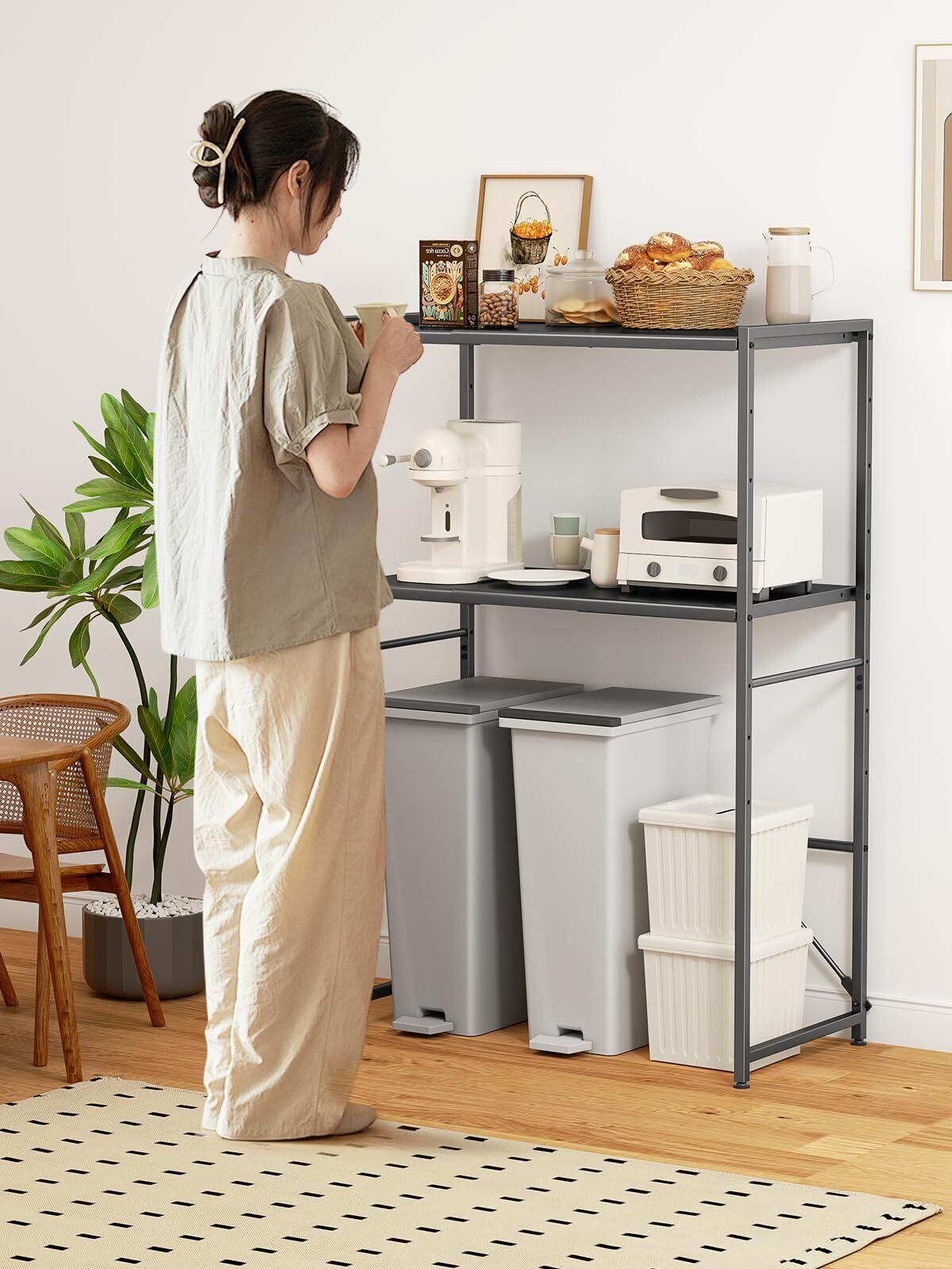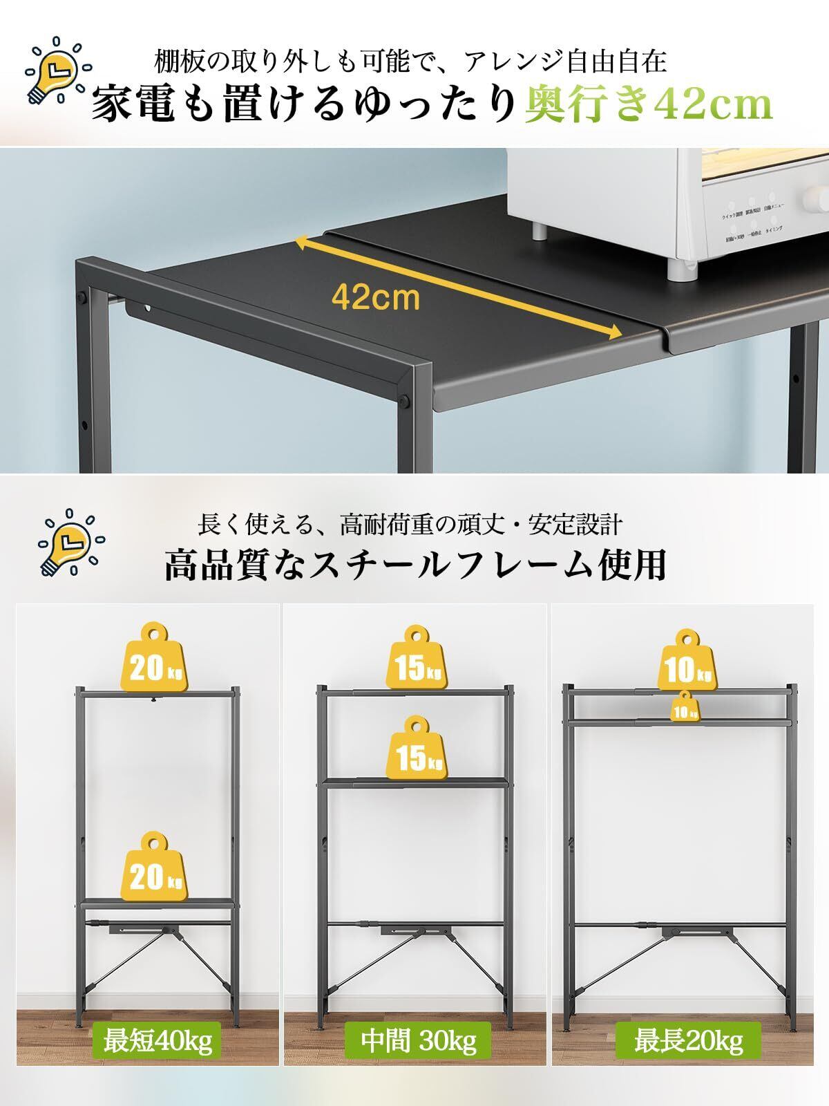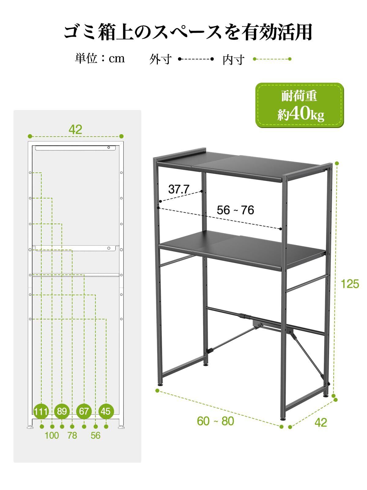 【幅伸縮可・上下調整可】ゴミ箱上ラック TKUIN 電子レンジラック レンジ台 幅60~80cm 高さ8段階調整 トースター置き台 多機能 キッチンラック キッチンボード 収納棚 収納ラック レンジボード スチール スリム 冷蔵庫上ラック おしゃれ 北欧 棚 収納 (Black) | yankees